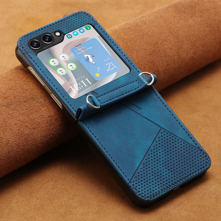 For Samsung Galaxy Z Flip7 Dream Triangle Leather Phone Case with Lanyard(Blue)