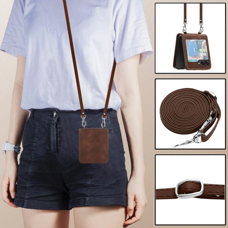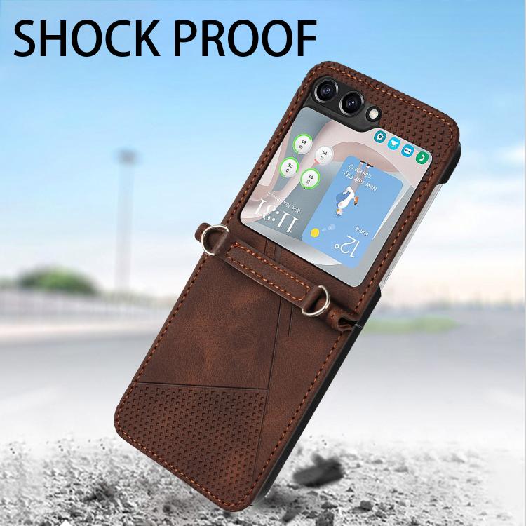 For Samsung Galaxy Z Flip7 Dream Triangle Leather Phone Case with Lanyard(Brown)