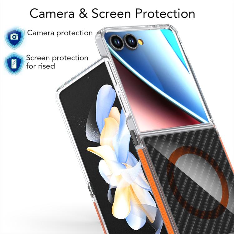 For Samsung Galaxy Z Flip7 Dual-Color Carbon Fiber Texture Magsafe Phone Case(Gray)