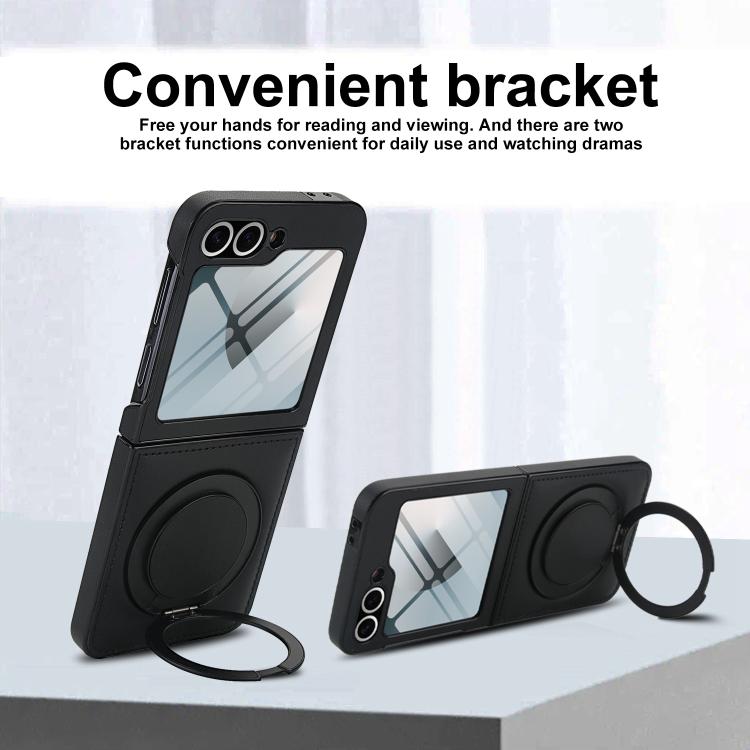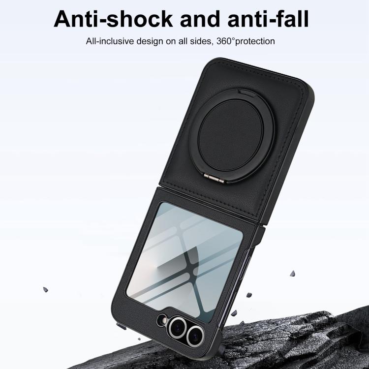 For Samsung Galaxy Z Flip7 FE / Flip6 Folding Rotation Holder MagSafe Film Integrated Leather Phone Case(Black)