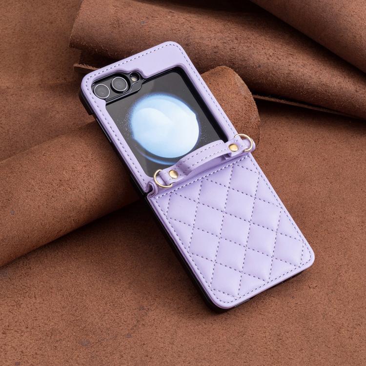 For Samsung Galaxy Z Flip7 Rhombus-shaped Crossbody Lanyard Leather Phone Case(Purple)