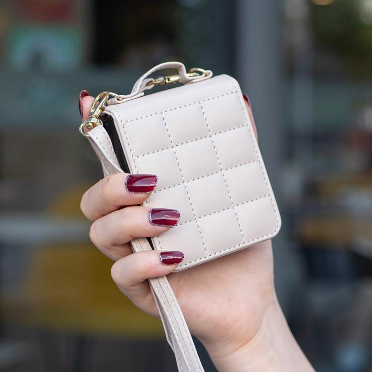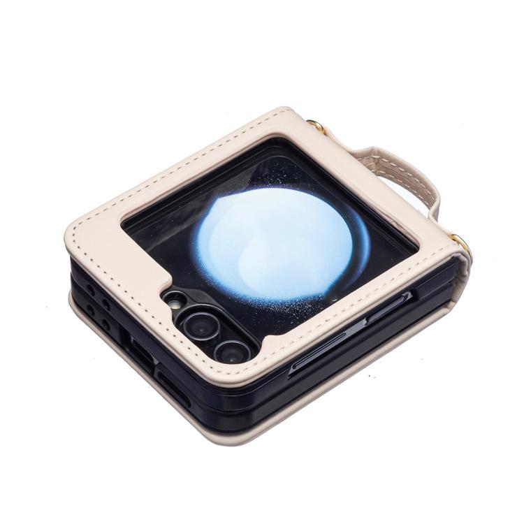 For Samsung Galaxy Z Flip7 Square-shaped Crossbody Lanyard Leather Phone Case(Beige)