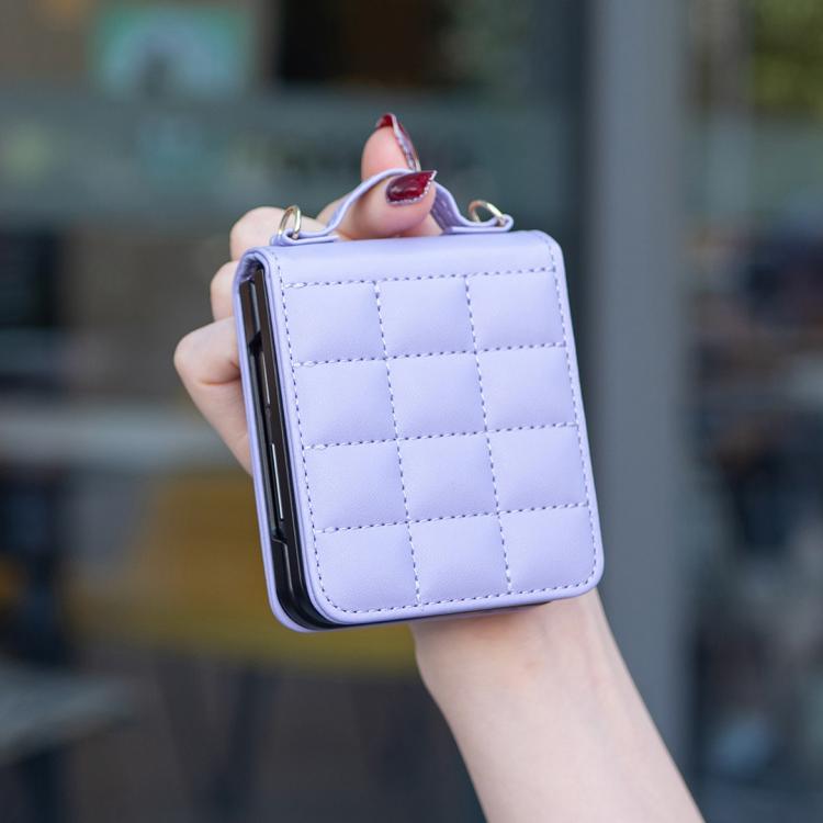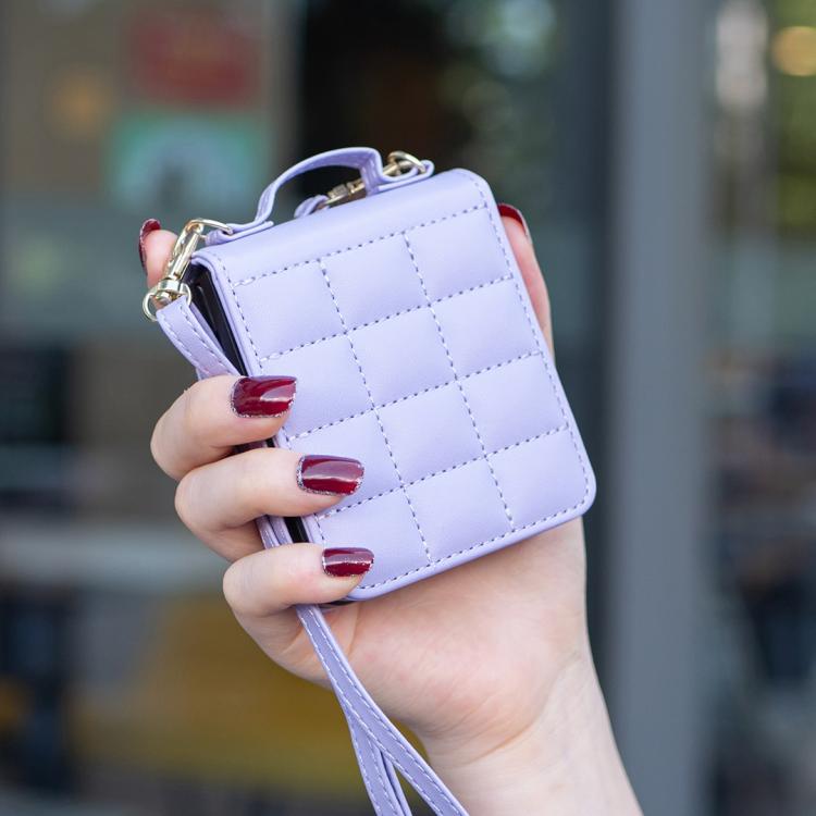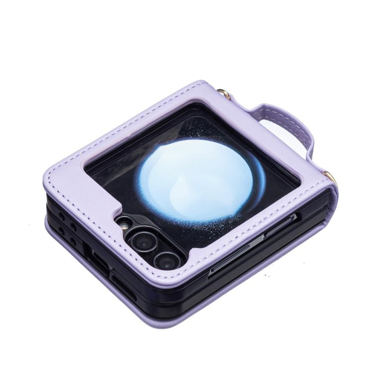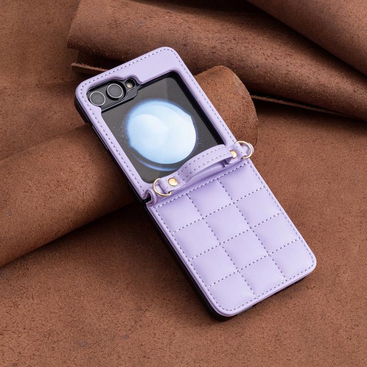 For Samsung Galaxy Z Flip7 Square-shaped Crossbody Lanyard Leather Phone Case(Purple)