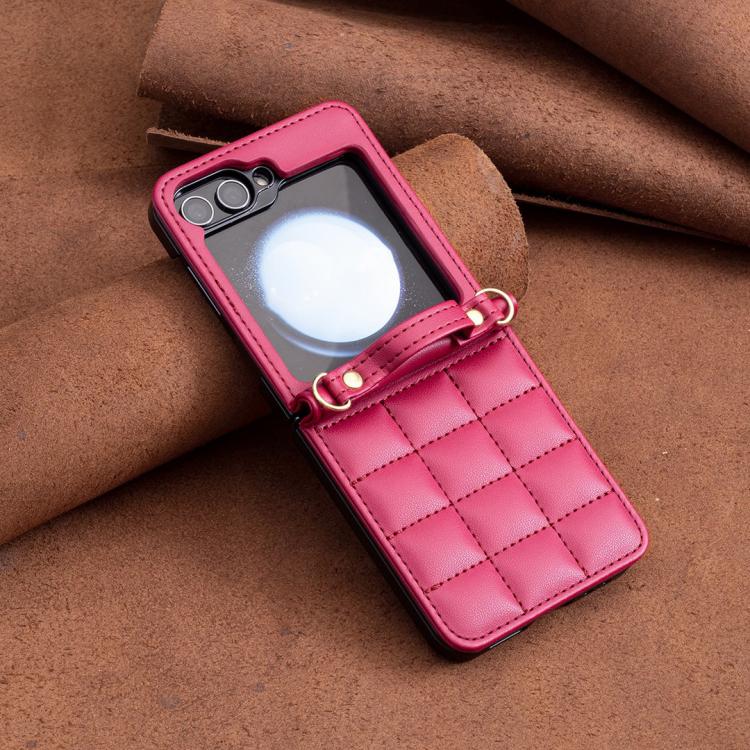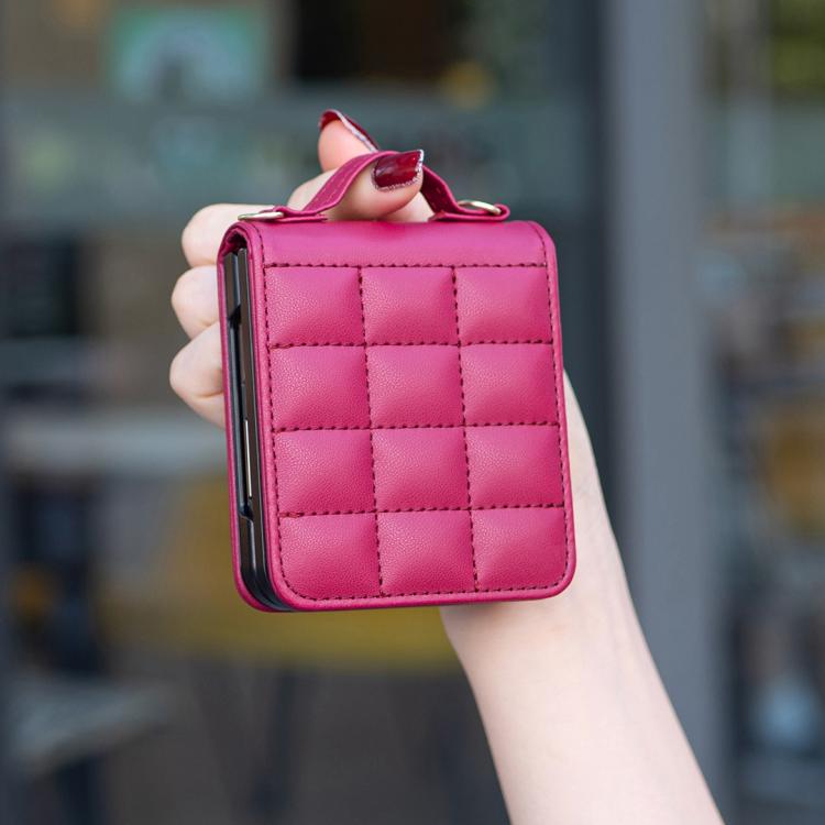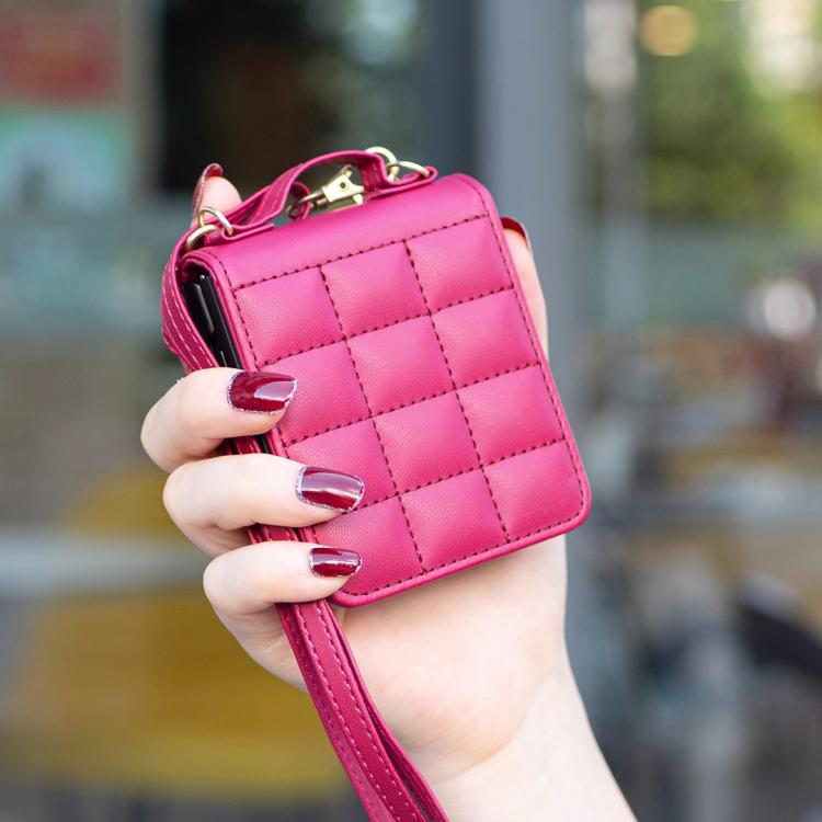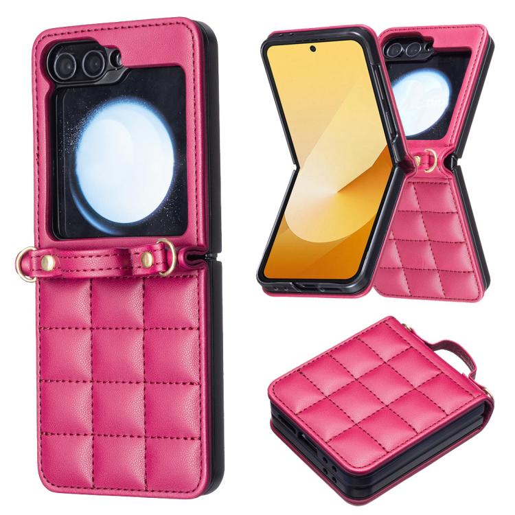 For Samsung Galaxy Z Flip7 Square-shaped Crossbody Lanyard Leather Phone Case(Rose Red)