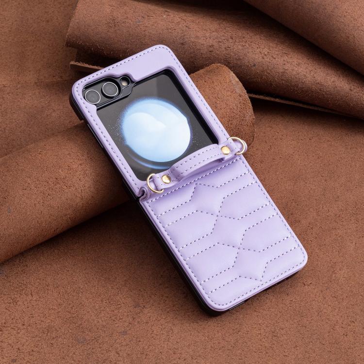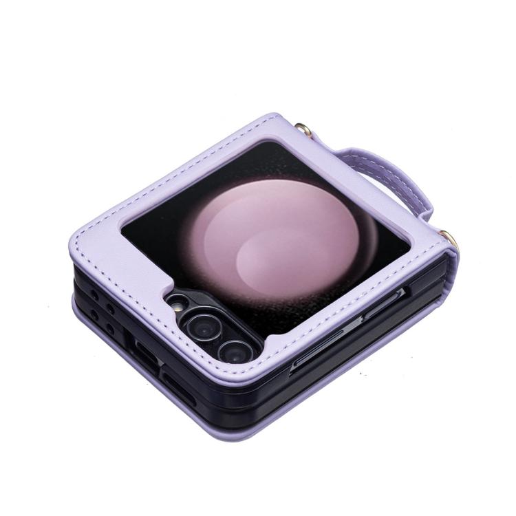 For Samsung Galaxy Z Flip7 V-shaped Crossbody Lanyard Leather Phone Case(Purple)