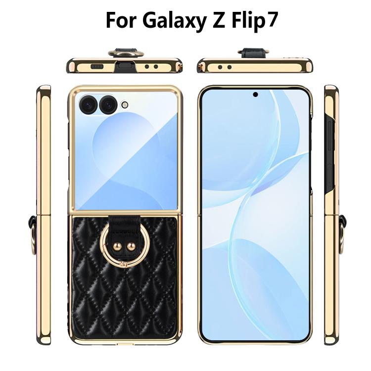 For Samsung Galaxy Z Flip7 VIETAO Diamond Pattern Metal Ring PU Leather Phone Case(Pink)