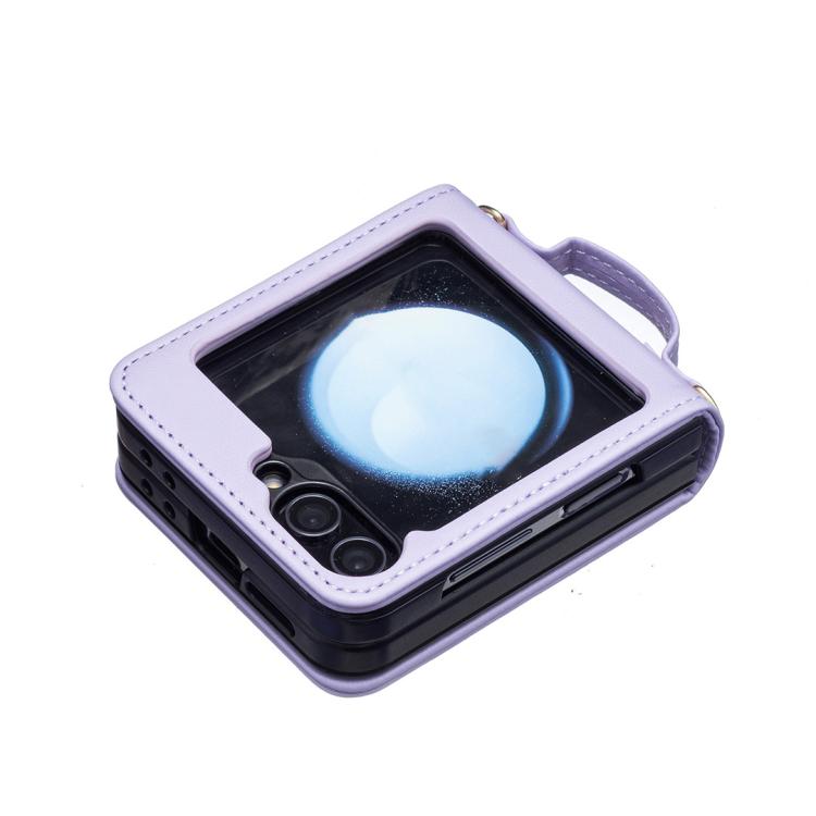 For Samsung Galaxy Z Flip7 Wave-shaped Crossbody Lanyard Leather Phone Case(Purple)