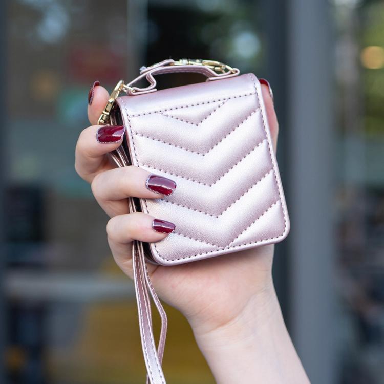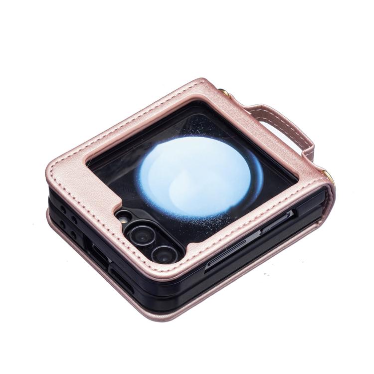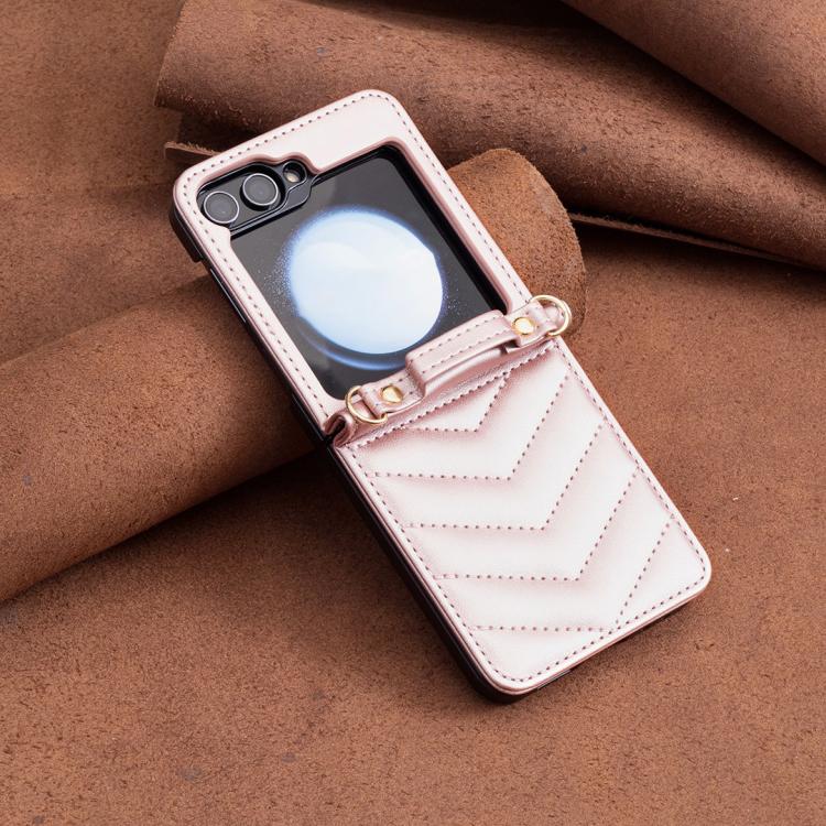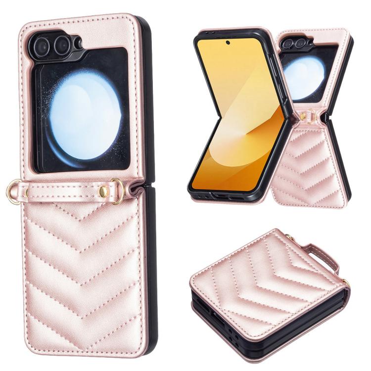 For Samsung Galaxy Z Flip7 Wave-shaped Crossbody Lanyard Leather Phone Case(Rose Gold)