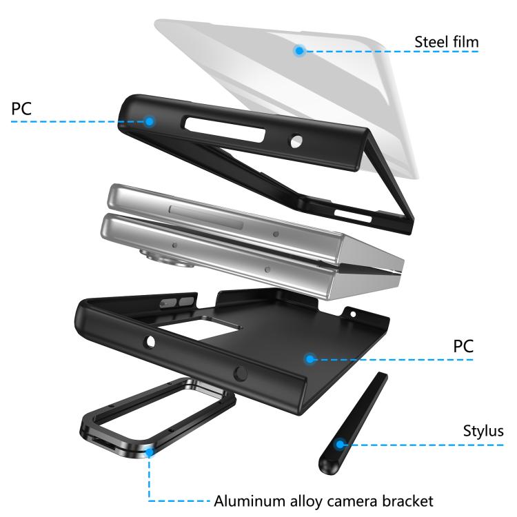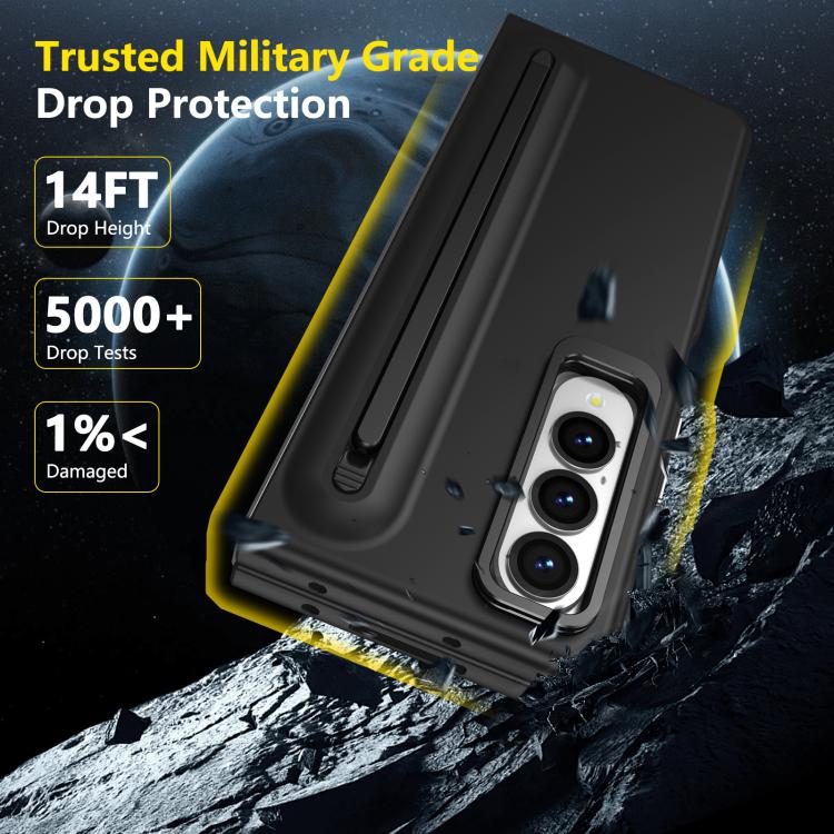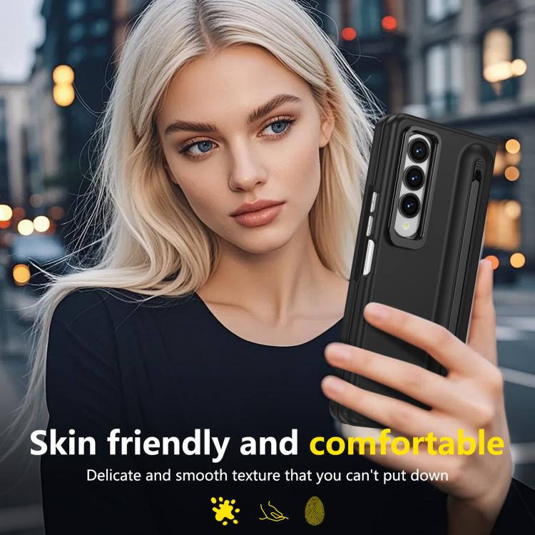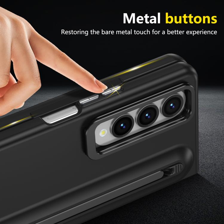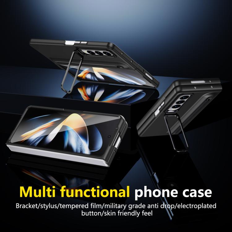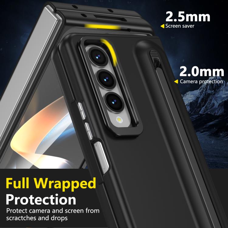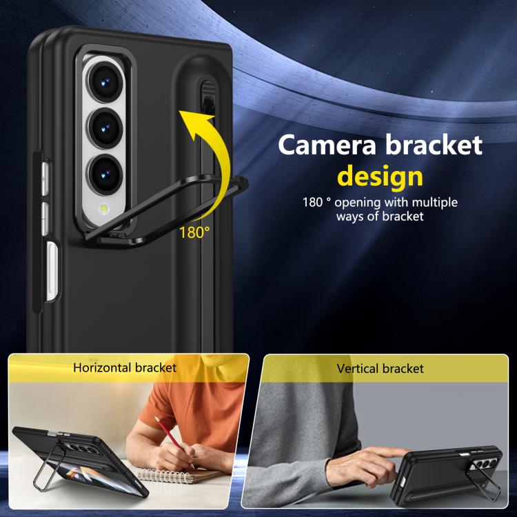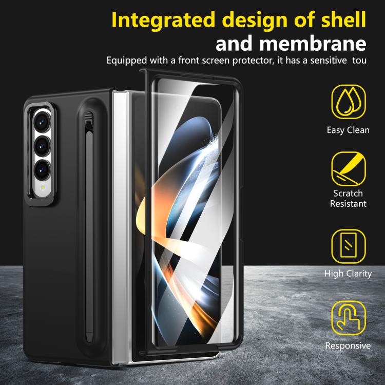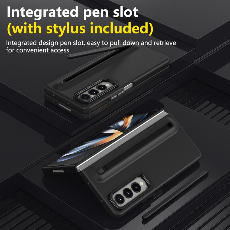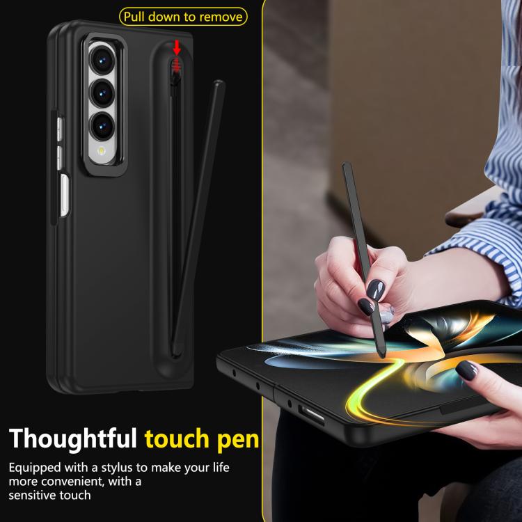For Samsung Galaxy Z Fold4 5G Integrated Skin Feel Lens Folding Holder Pen Slot Shockproof Phone Case with Pen(Black)