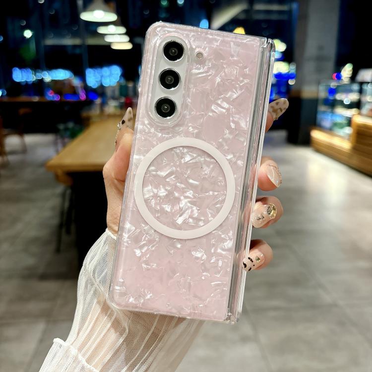For Samsung Galaxy Z Fold4 5G Magnetic Axis Pearlescent Shell Texture MagSafe Phone Case(Pink)