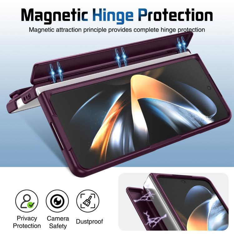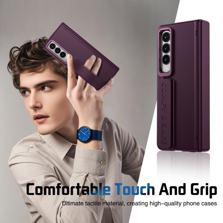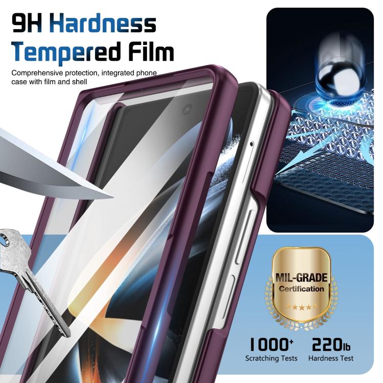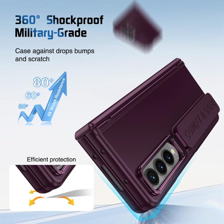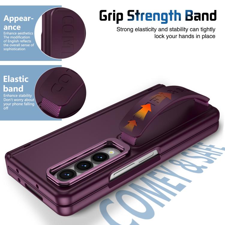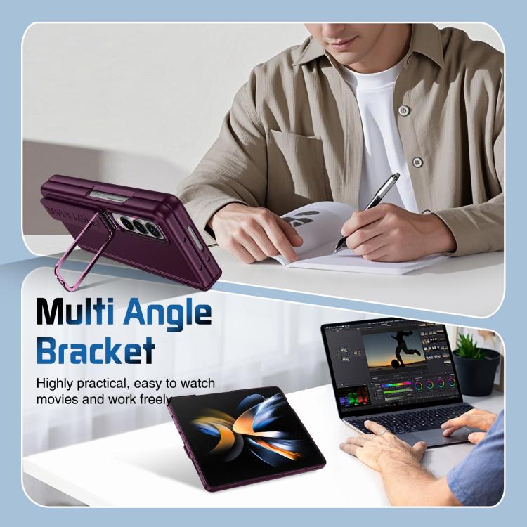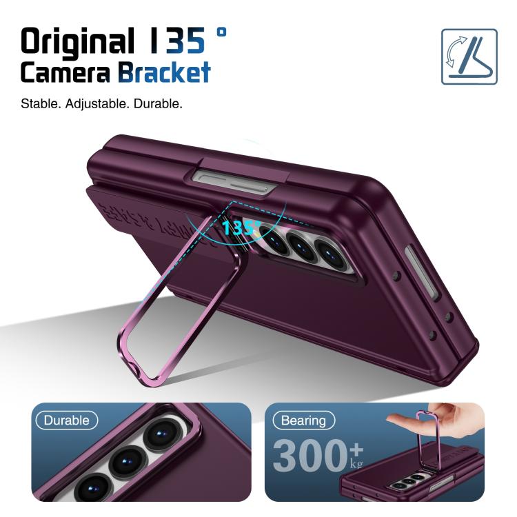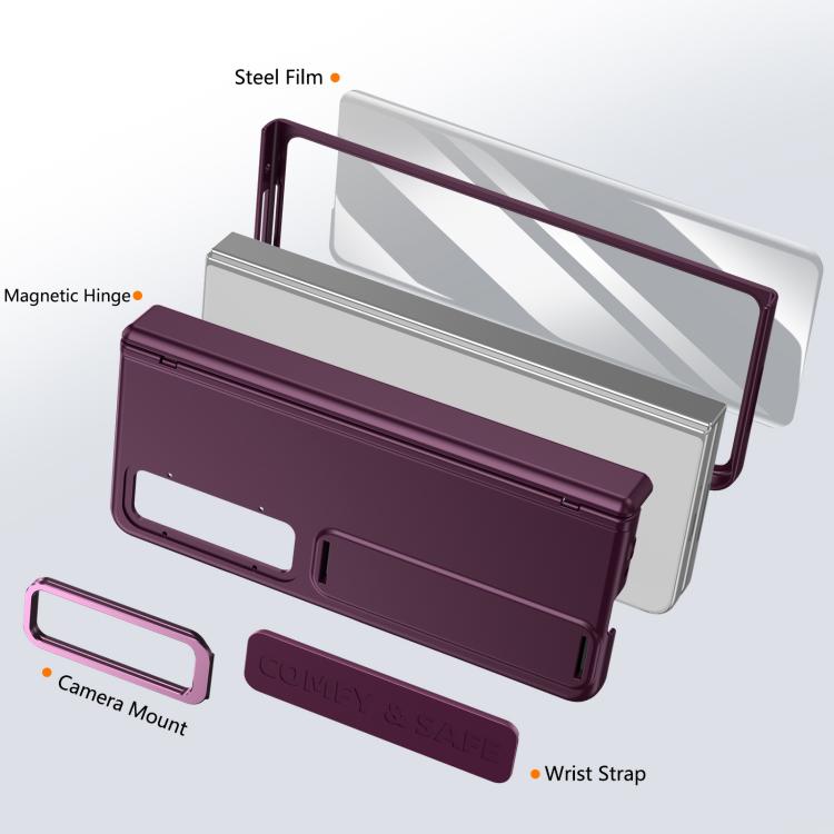 For Samsung Galaxy Z Fold4 Film Integrated Lens Frame Bracket Phone Case with Wristband(Wine Red)
