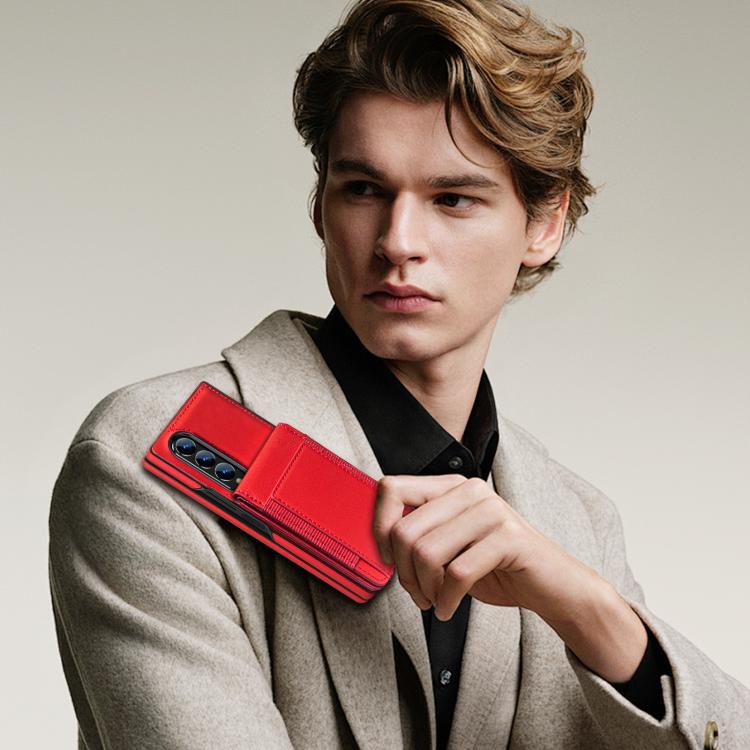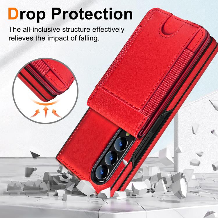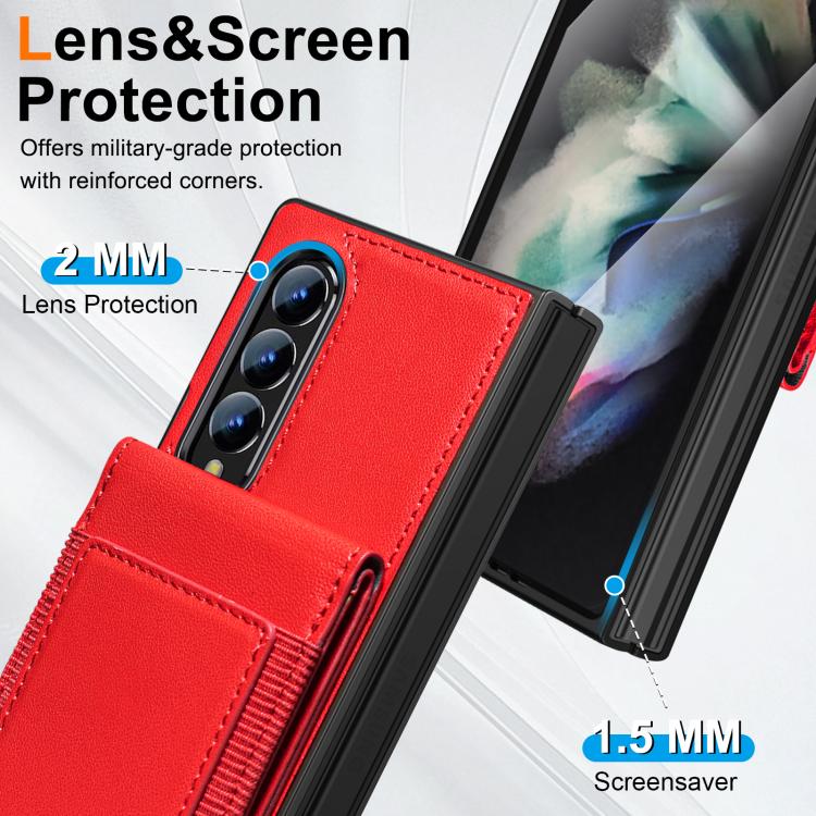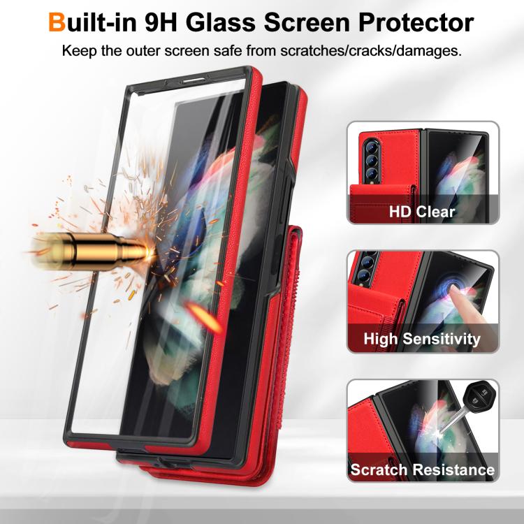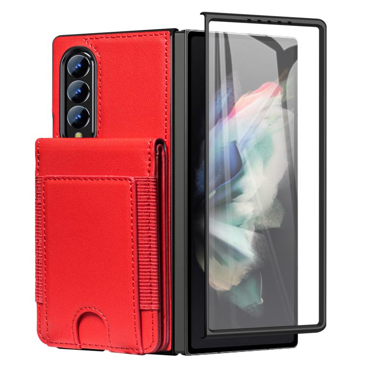 For Samsung Galaxy Z Fold4 Folding Card Holder Tempered Film Integrated Leather Phone Case(Red)