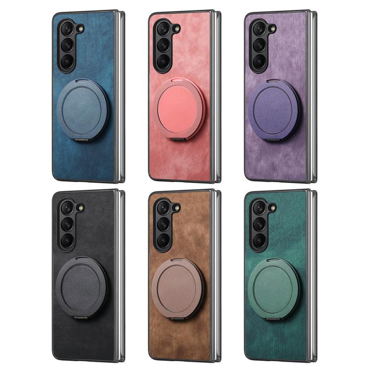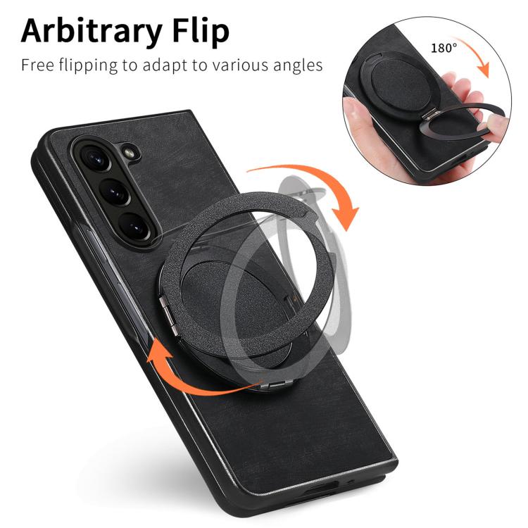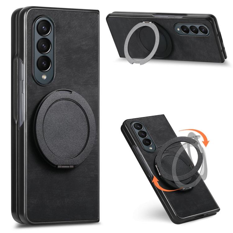 For Samsung Galaxy Z Fold4 Retro Leather Rotation Round Holder Phone Case(Black)