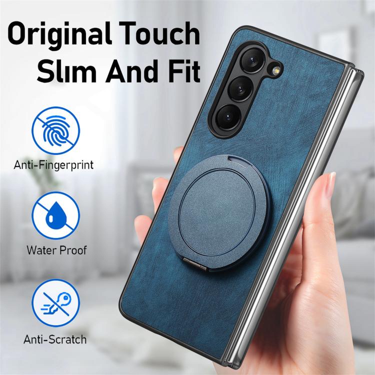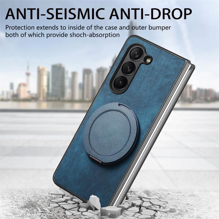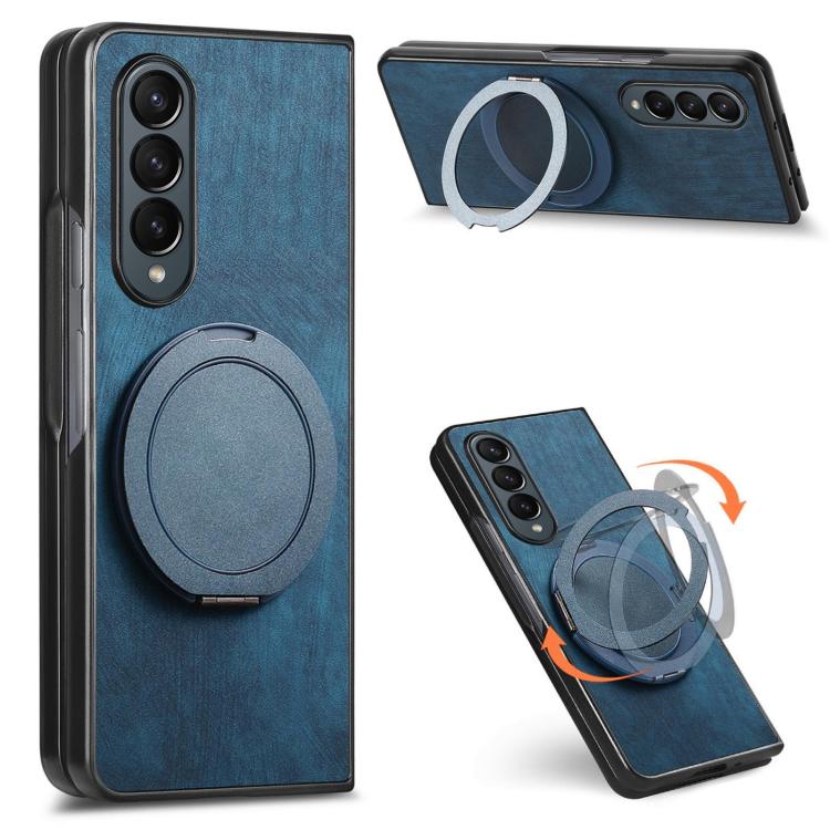 For Samsung Galaxy Z Fold4 Retro Leather Rotation Round Holder Phone Case(Blue)