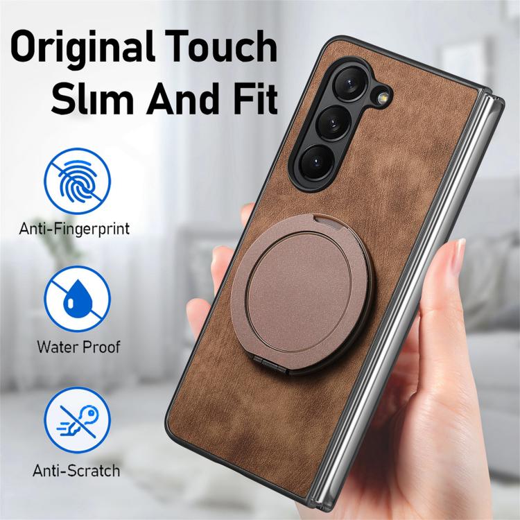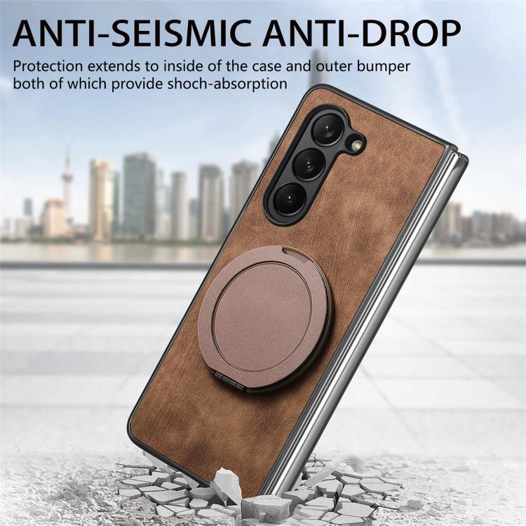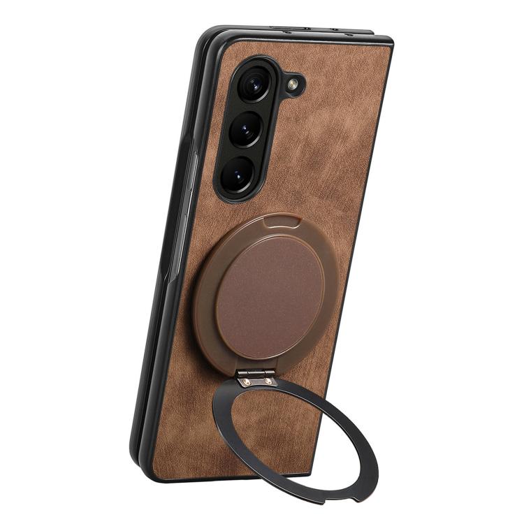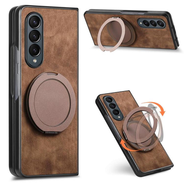 For Samsung Galaxy Z Fold4 Retro Leather Rotation Round Holder Phone Case(Brown)