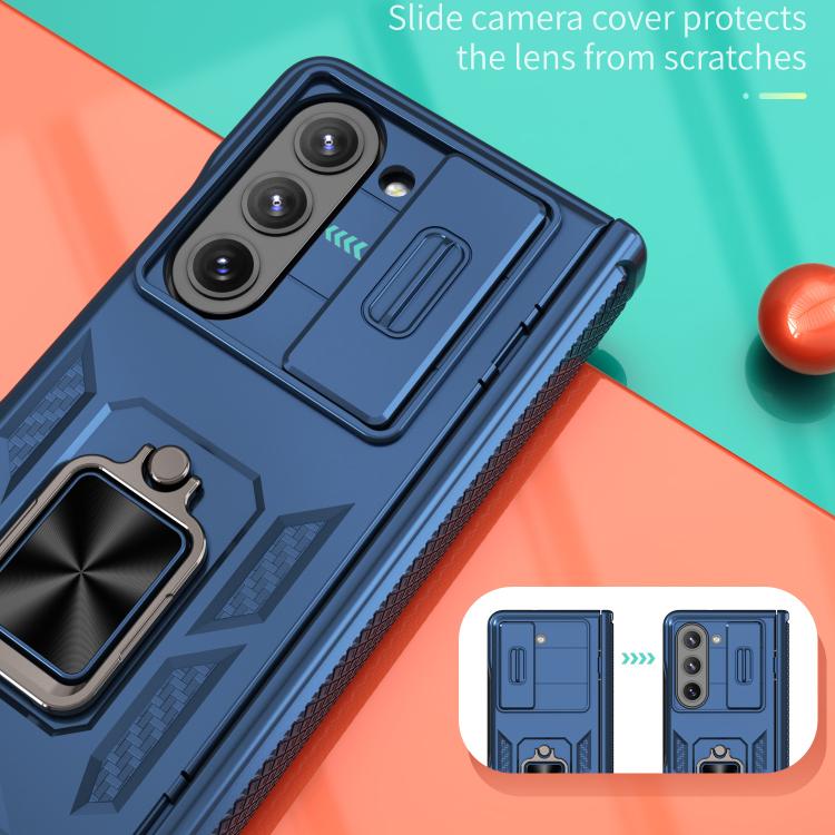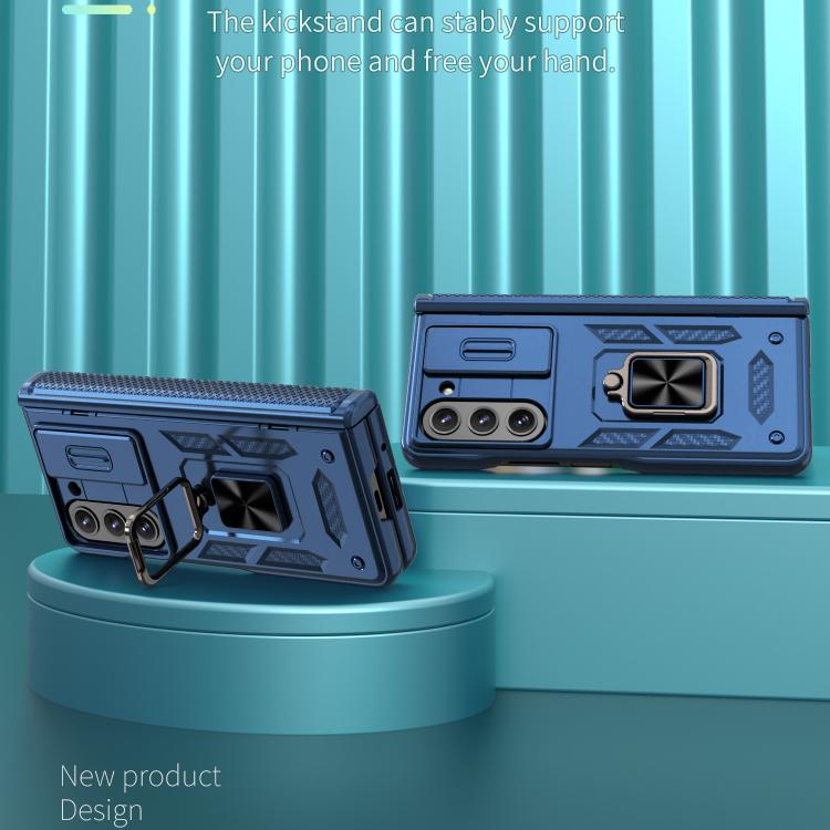 For Samsung Galaxy Z Fold5 5G Kalebol Sliding Window Hinge Phone Case with Ring Stand(Blue)
