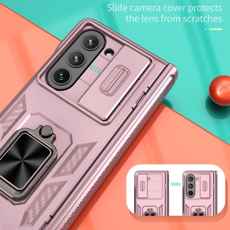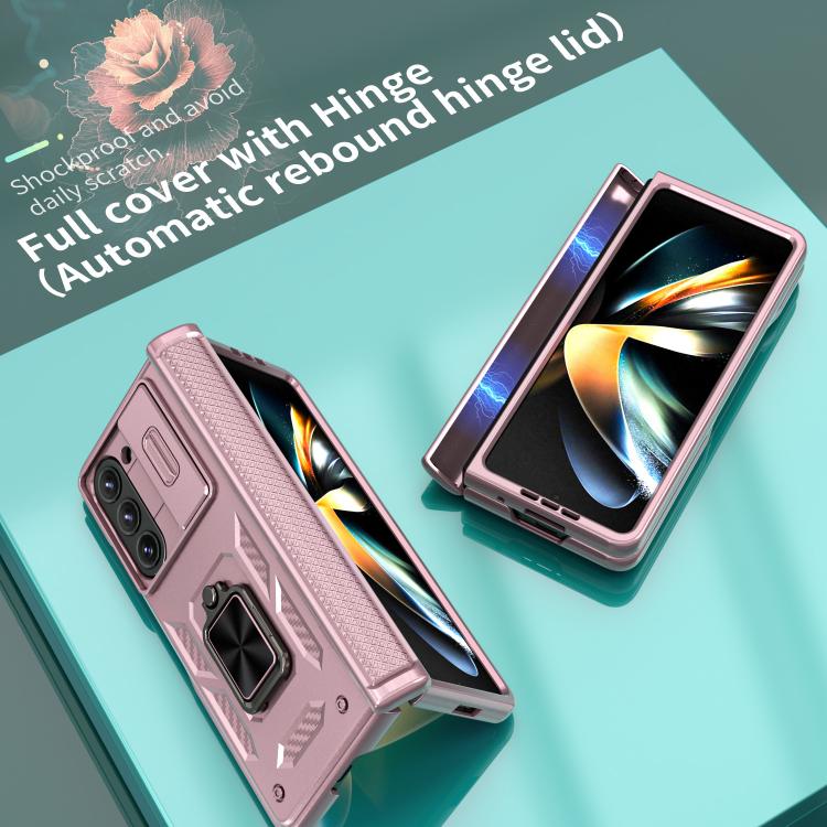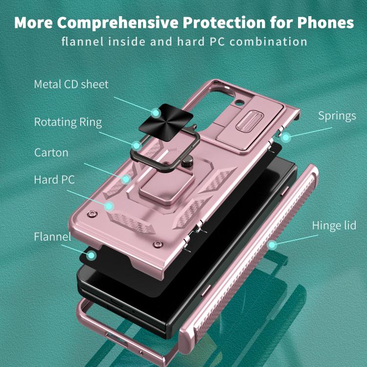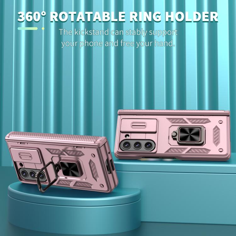 For Samsung Galaxy Z Fold5 5G Kalebol Sliding Window Hinge Phone Case with Ring Stand(Rose Gold)