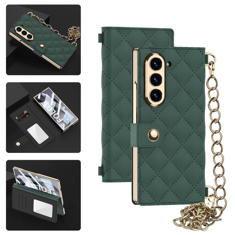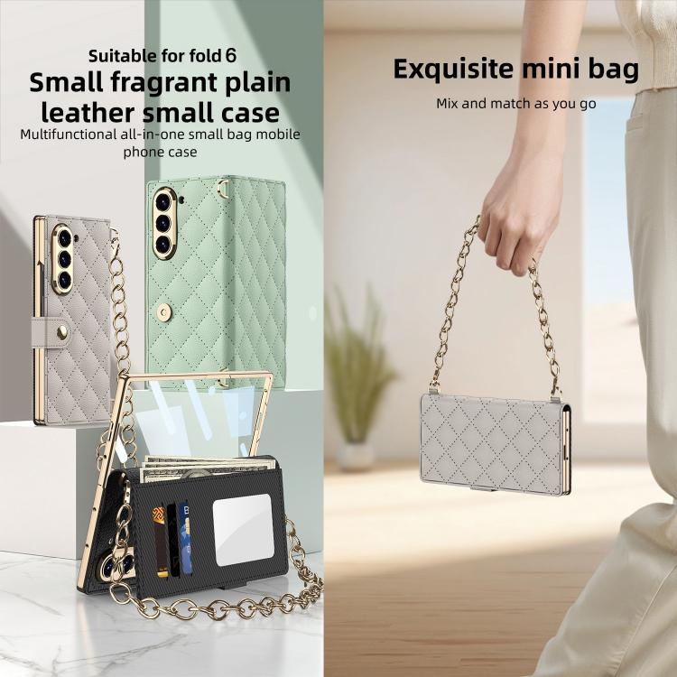 For Samsung Galaxy Z Fold6 5G GKK Integrated Plating Diamond Texture Leather Phone Case With Crossbody Chain(Emerald)