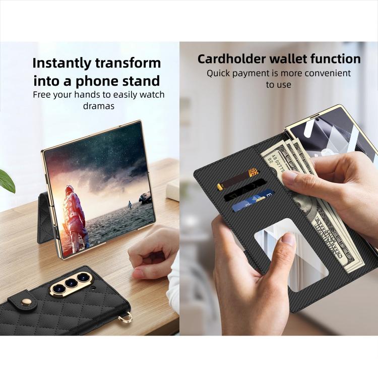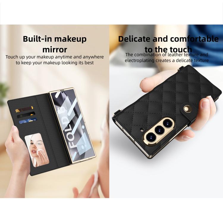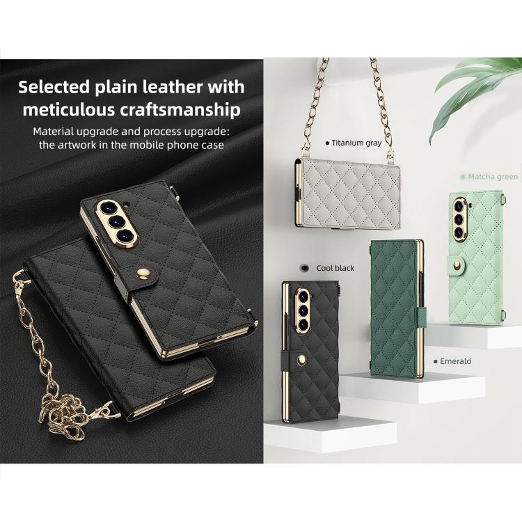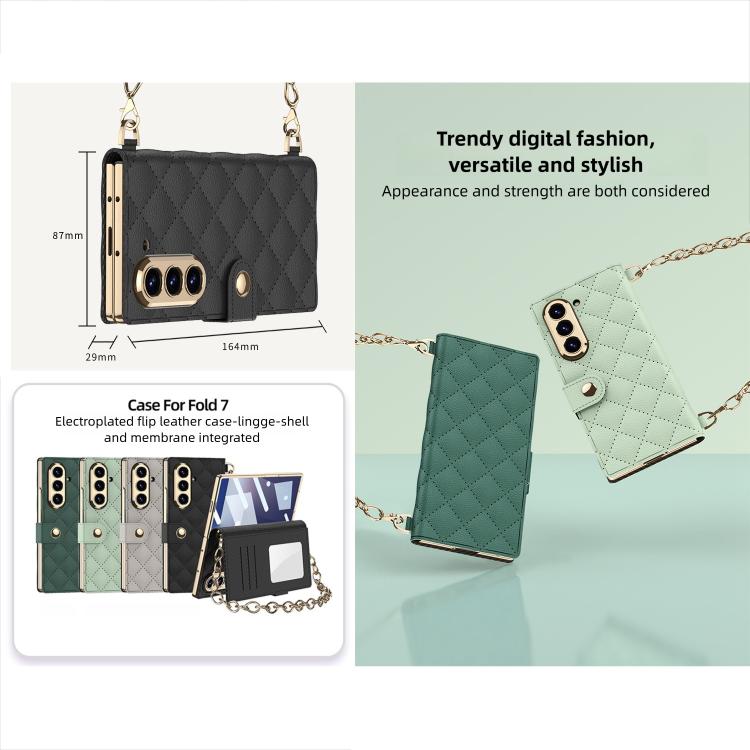 For Samsung Galaxy Z Fold6 5G GKK Integrated Plating Diamond Texture Leather Phone Case With Crossbody Chain(Matcha Green)
