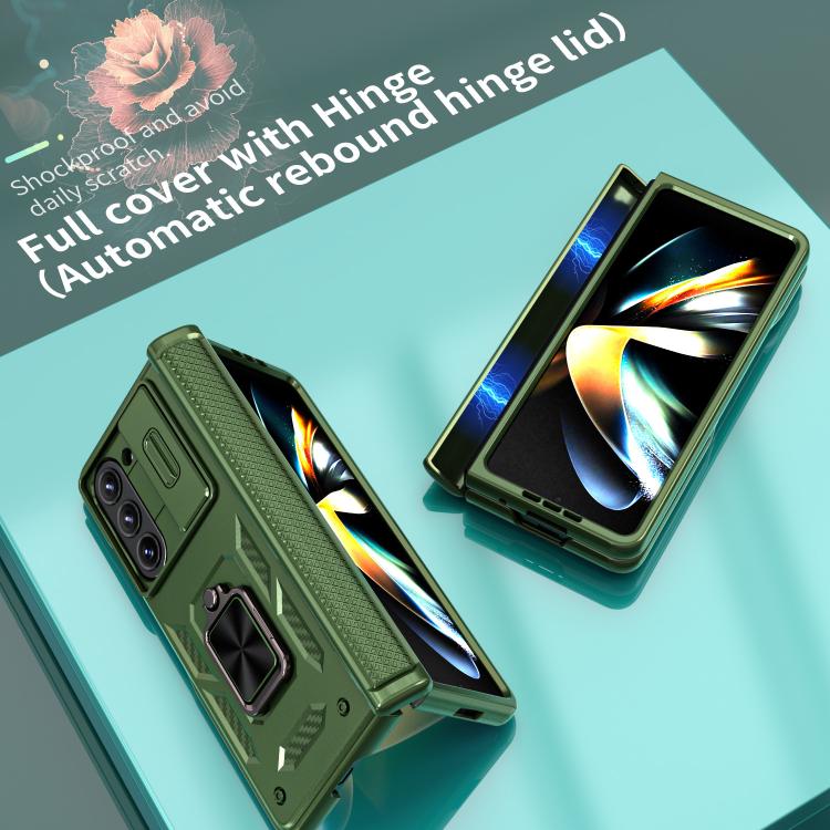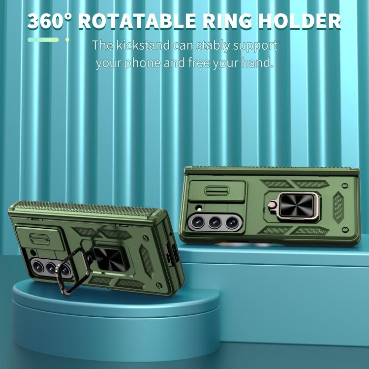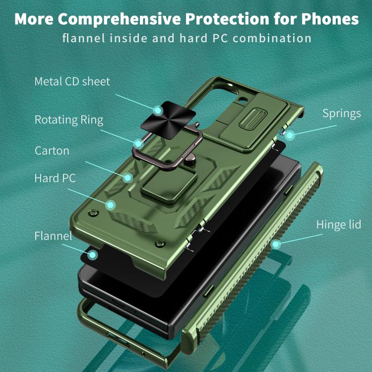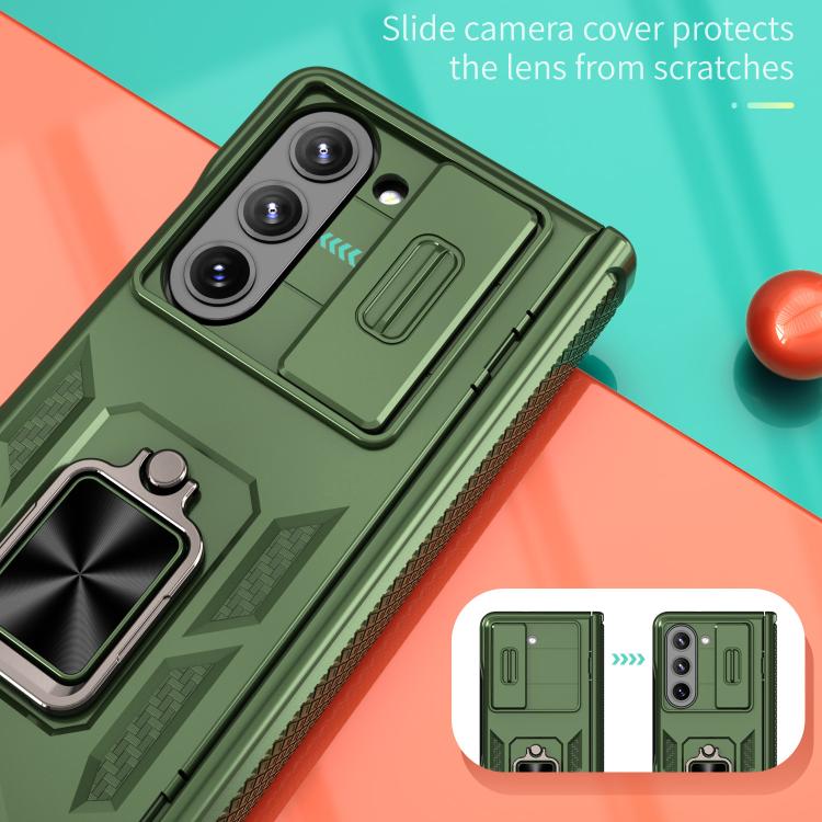 For Samsung Galaxy Z Fold6 5G Kalebol Sliding Window Hinge Phone Case with Ring Stand(Green)