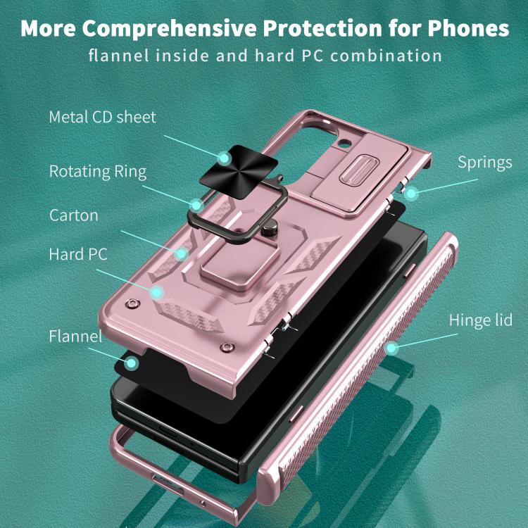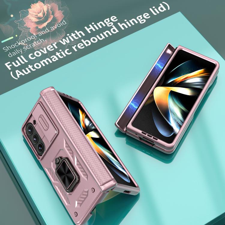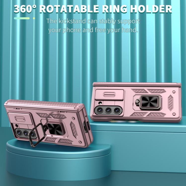 For Samsung Galaxy Z Fold6 5G Kalebol Sliding Window Hinge Phone Case with Ring Stand(Rose Gold)