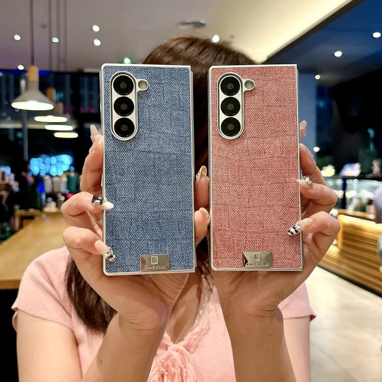 For Samsung Galaxy Z Fold6 5G Silver Frame Denim PU + PC Phone Case(Pink)