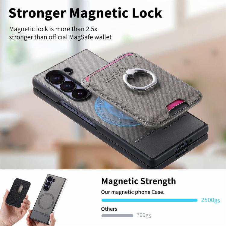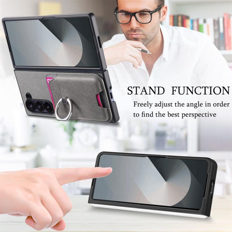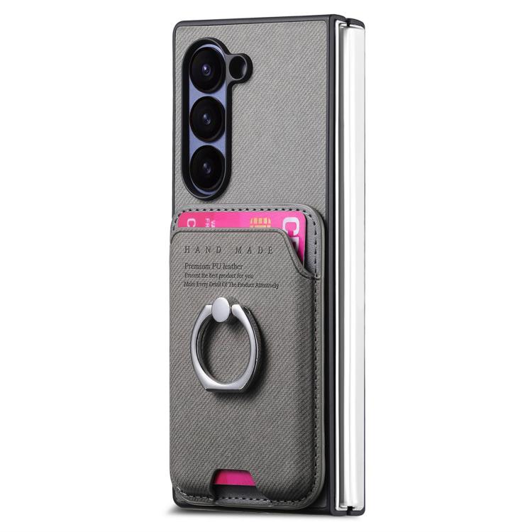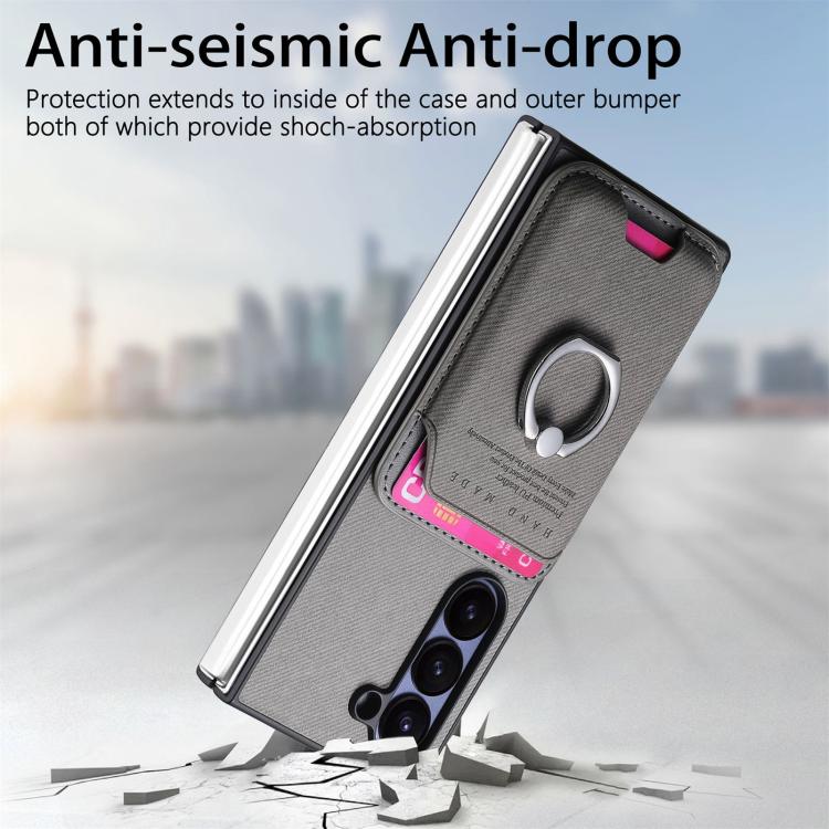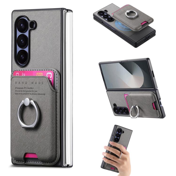 For Samsung Galaxy Z Fold6 5G Twill Fabric Card Bag Ring Magnetic Back Phone Case(Gray)