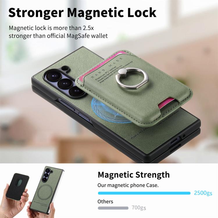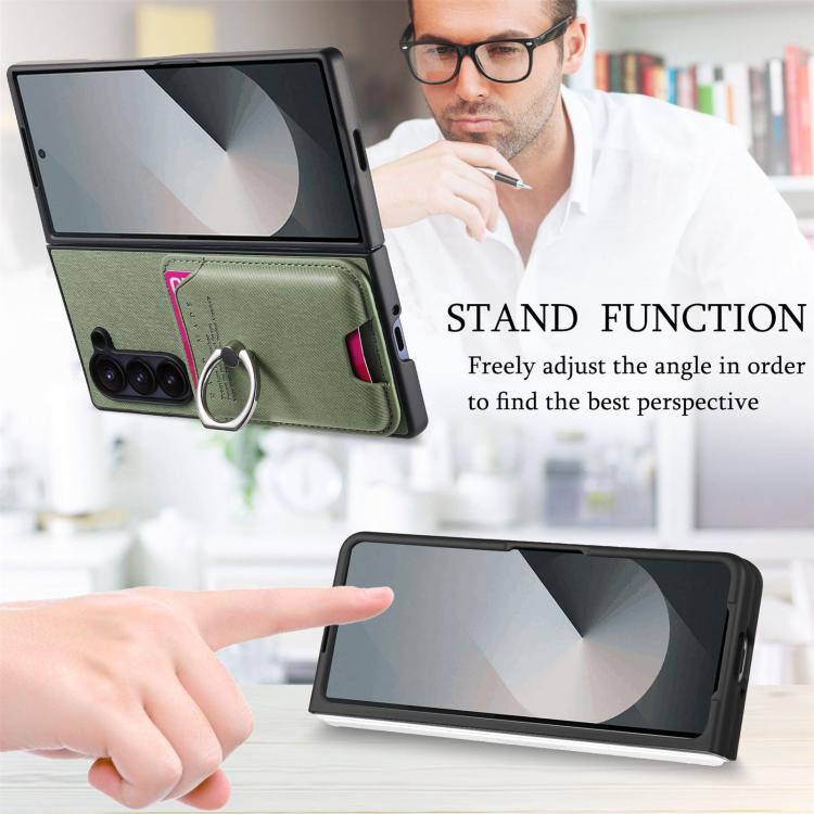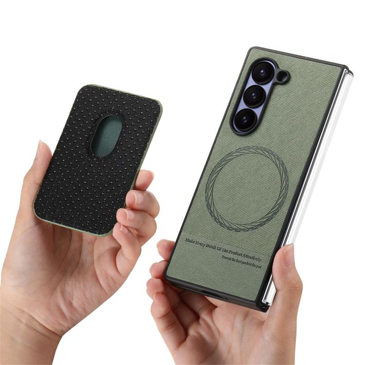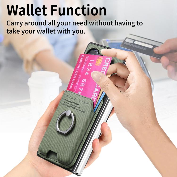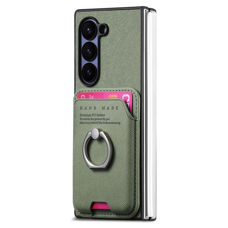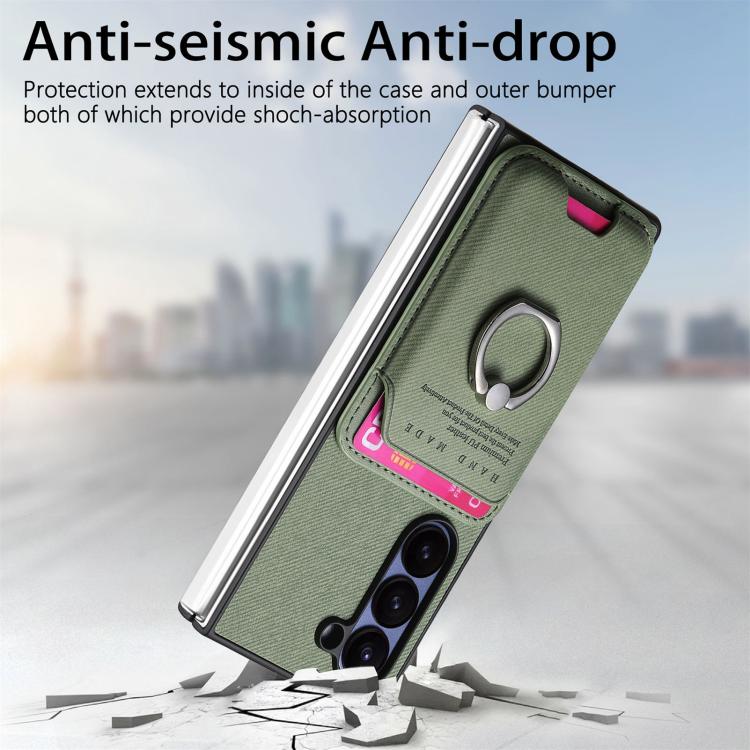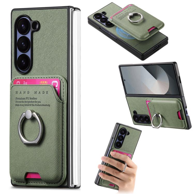 For Samsung Galaxy Z Fold6 5G Twill Fabric Card Bag Ring Magnetic Back Phone Case(Green)