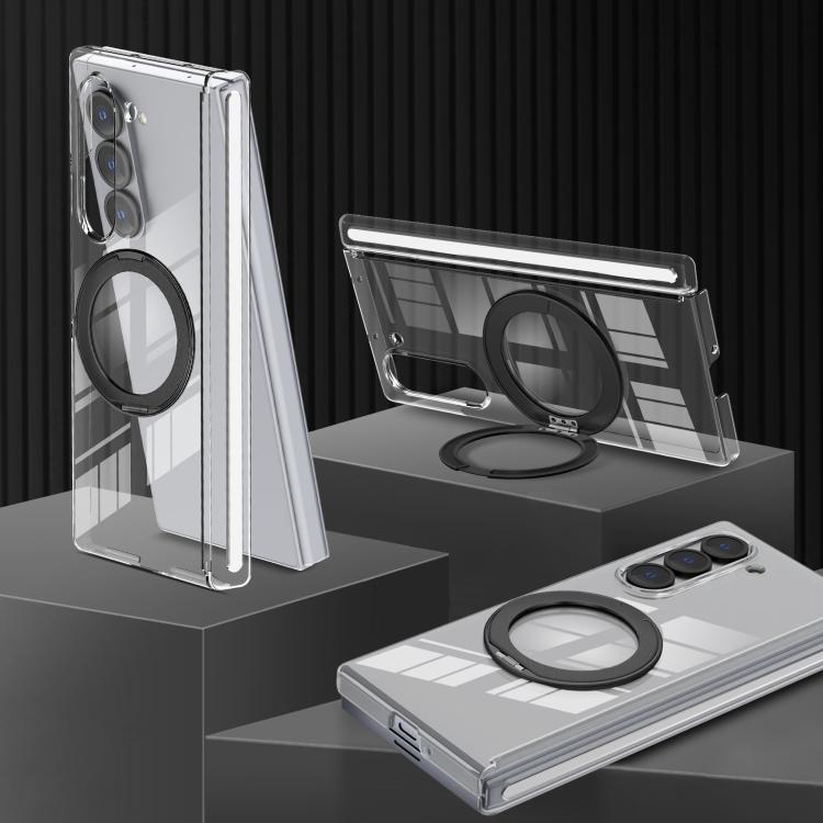 For Samsung Galaxy Z Fold6 Aluminum Alloy Holder MagSafe Crystal Hinge Phone Case(Black)