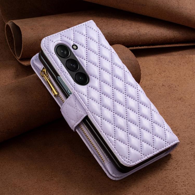 For Samsung Galaxy Z Fold6 Diamond Lattice Zipper Wallet Leather Flip Phone Case(Purple)