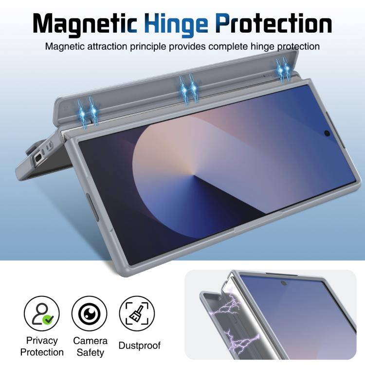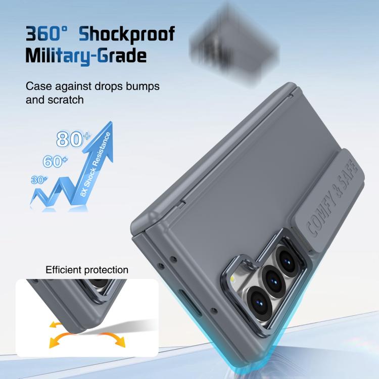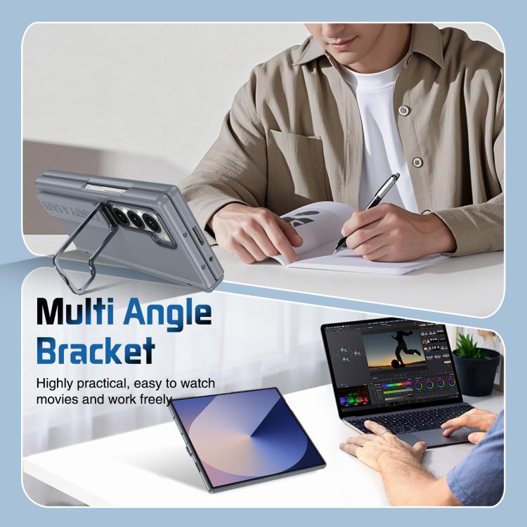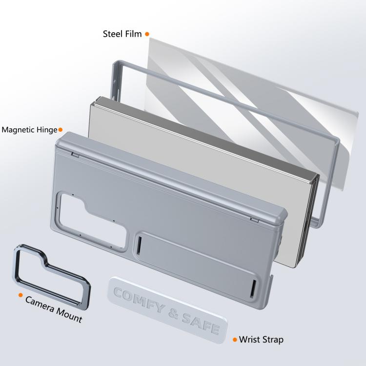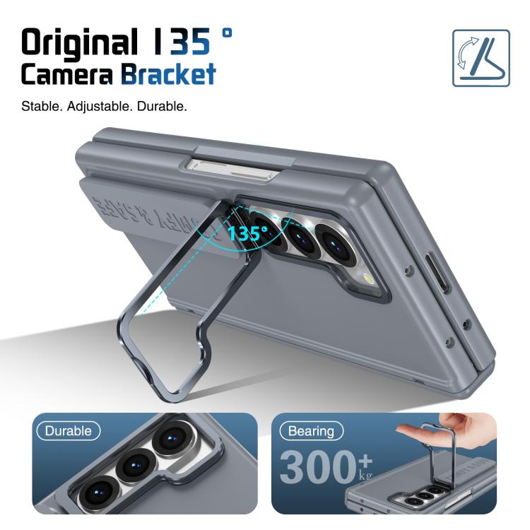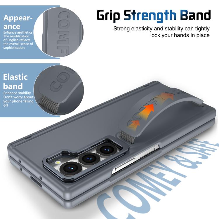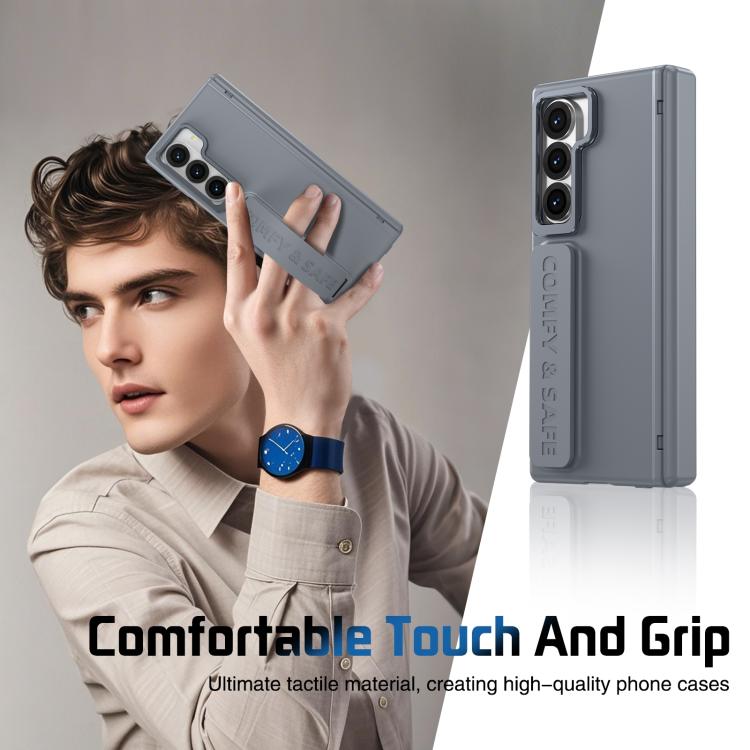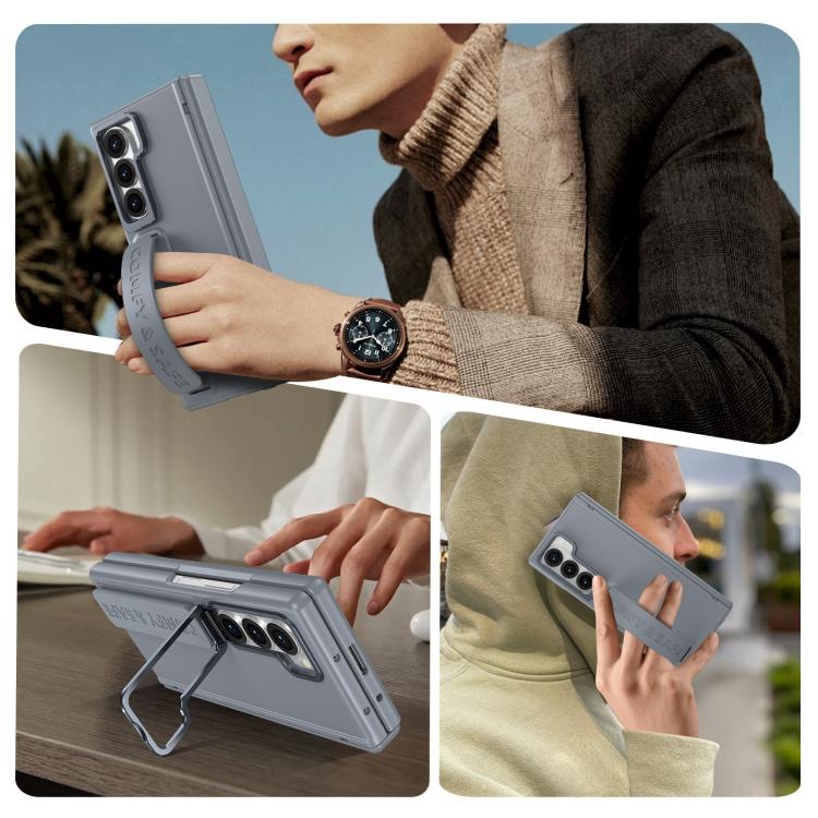 For Samsung Galaxy Z Fold6 Film Integrated Lens Frame Bracket Phone Case with Wristband(Grey)
