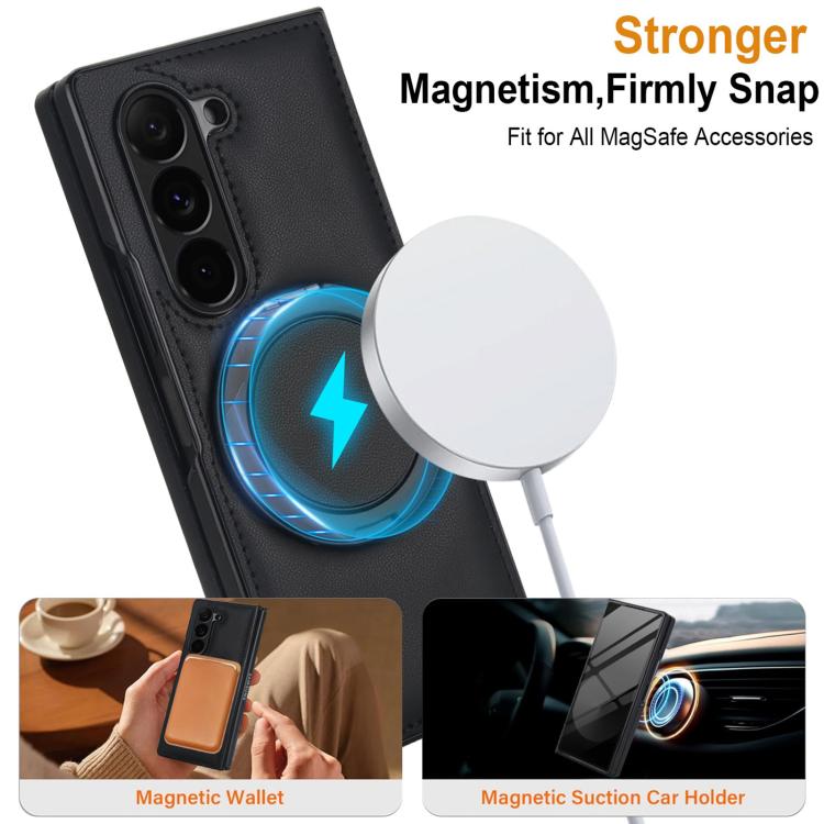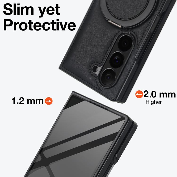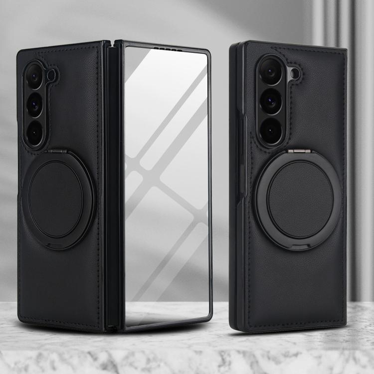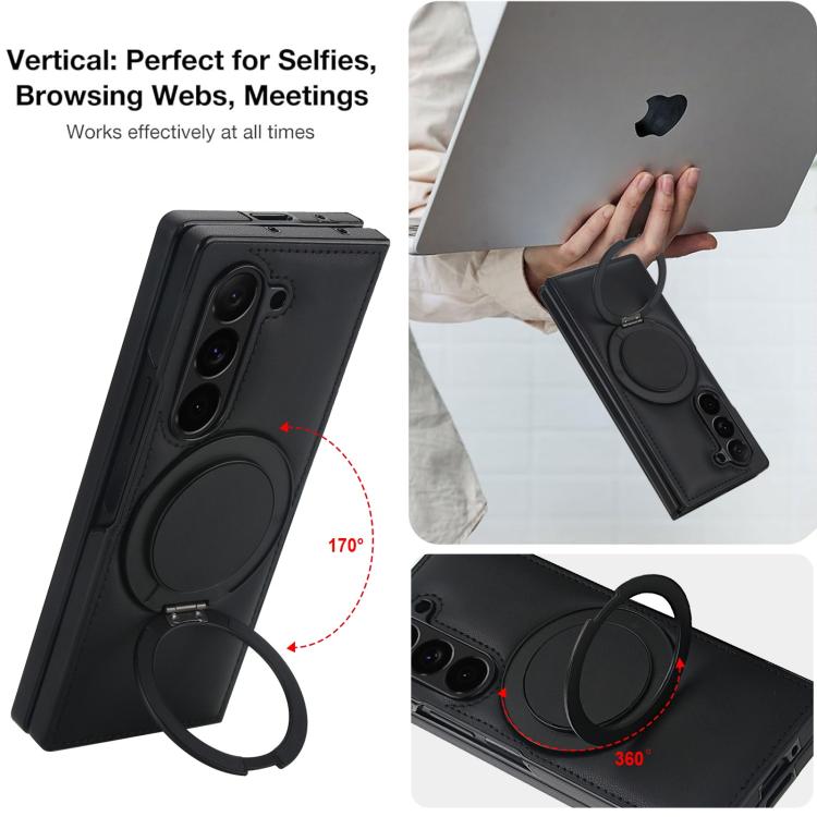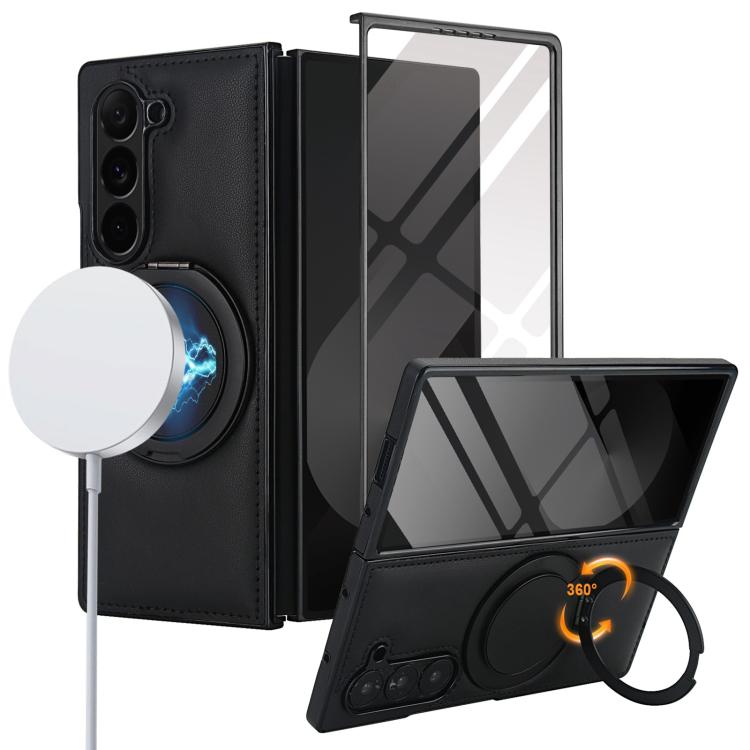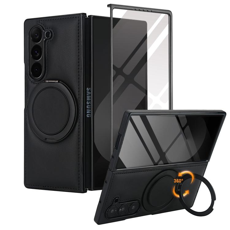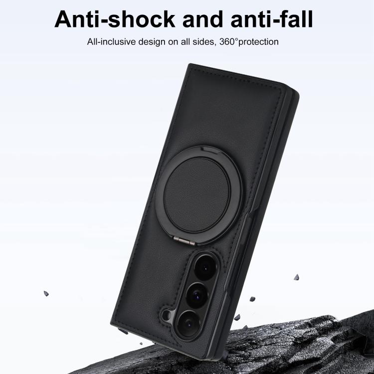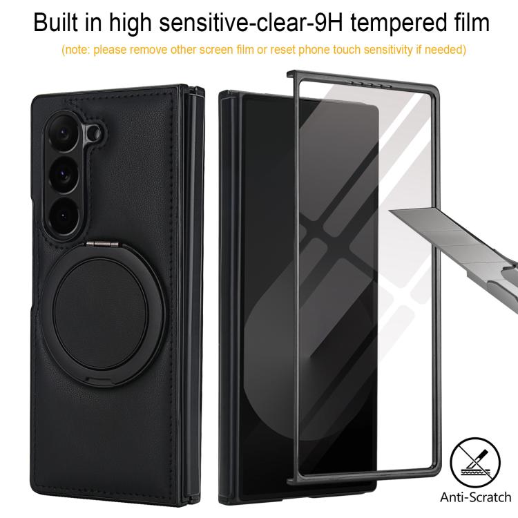 For Samsung Galaxy Z Fold6 Folding Rotation Holder MagSafe Film Integrated Leather Phone Case(Black)