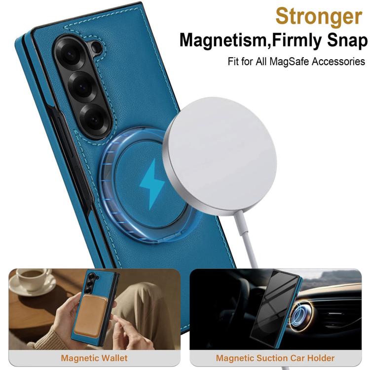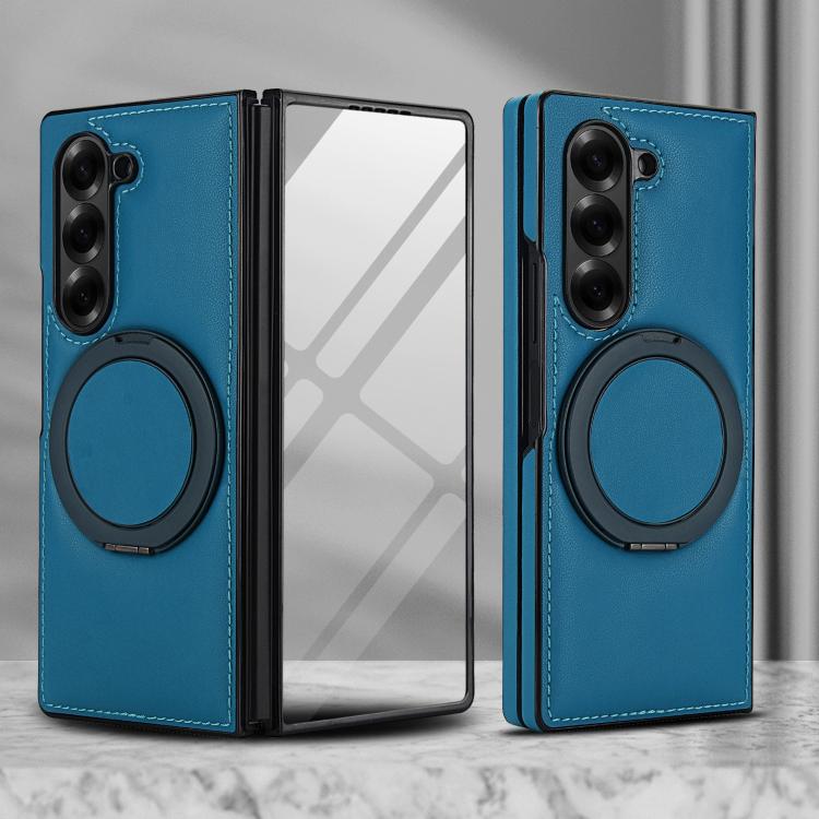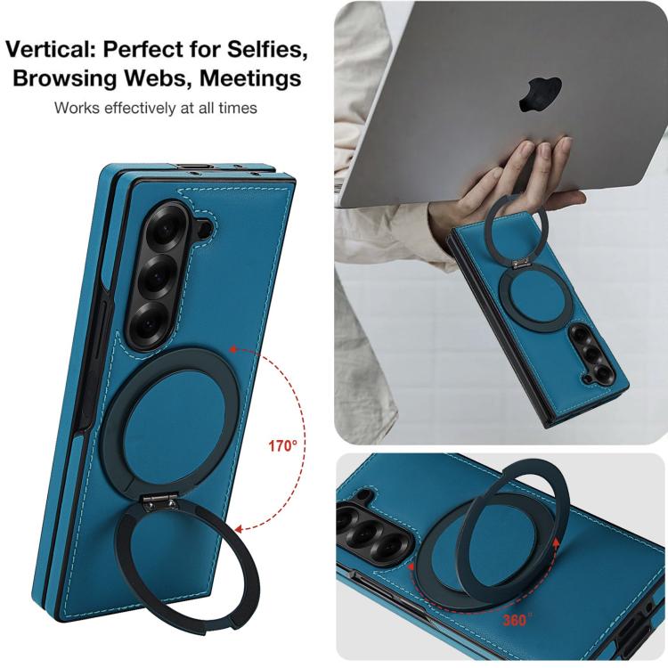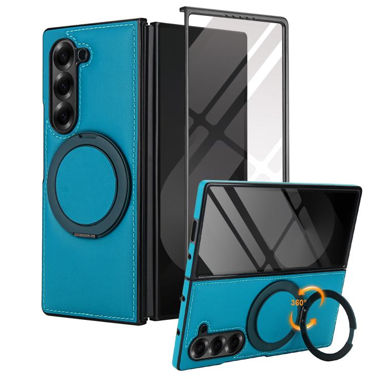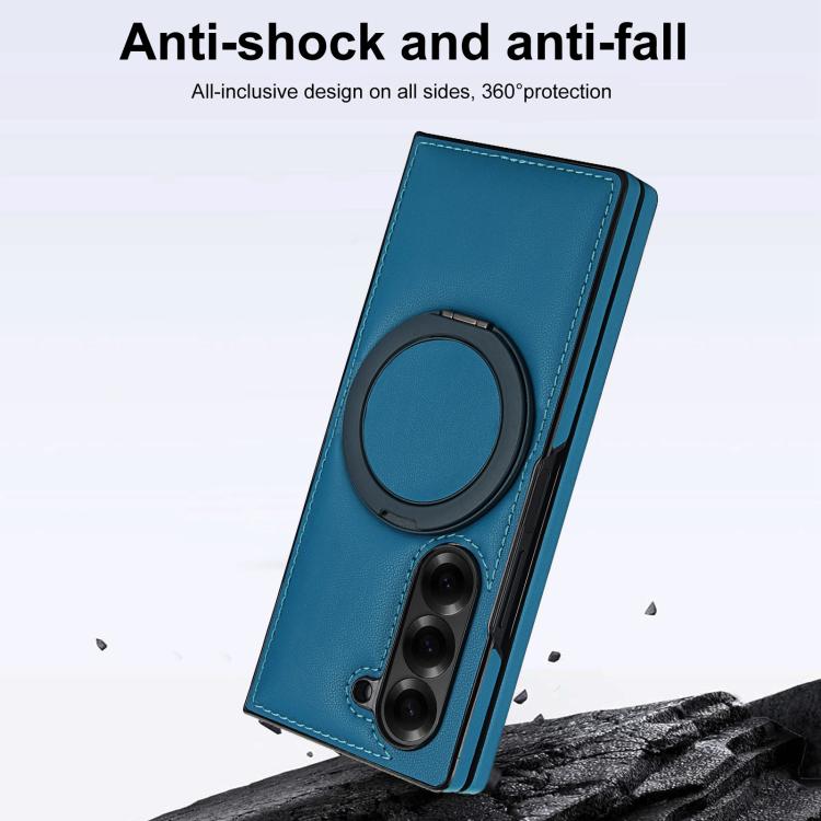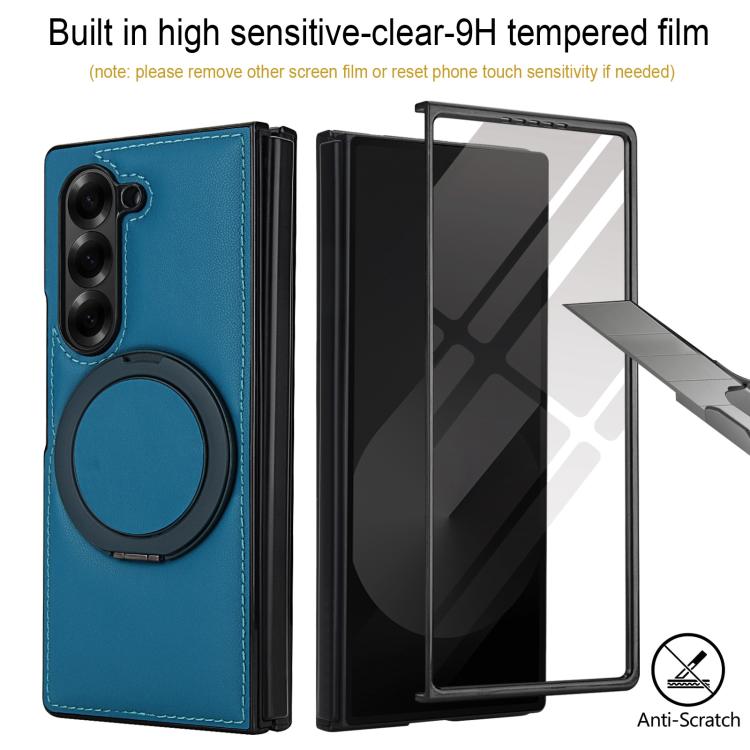 For Samsung Galaxy Z Fold6 Folding Rotation Holder MagSafe Film Integrated Leather Phone Case(Blue)