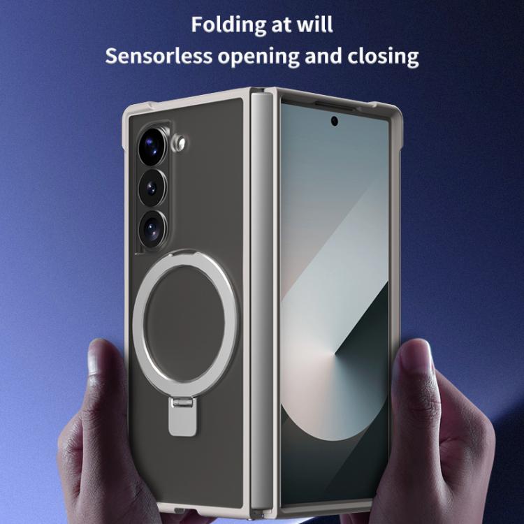 For Samsung Galaxy Z Fold6 Four-corner Shockproof MagSafe Holder Phone Case(Blue)