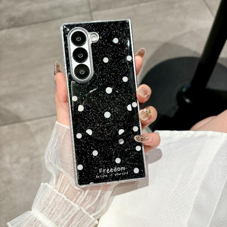 For Samsung Galaxy Z Fold6 Glitter Powder Dots Pattern Phone Case with Holder(Black)