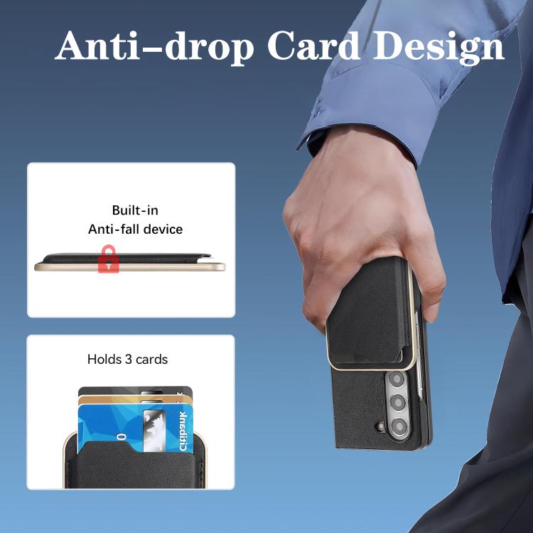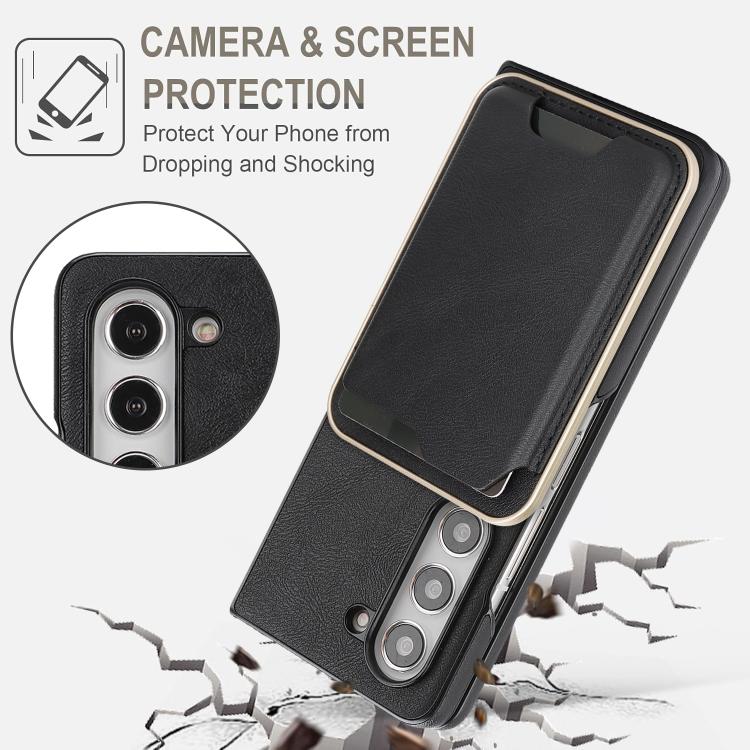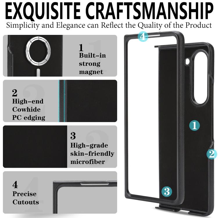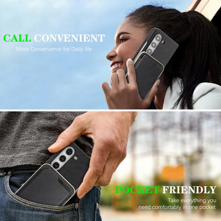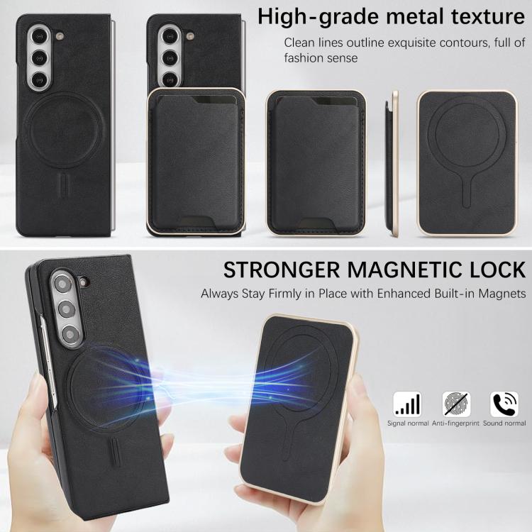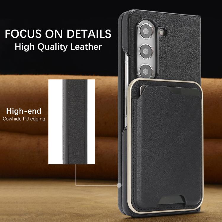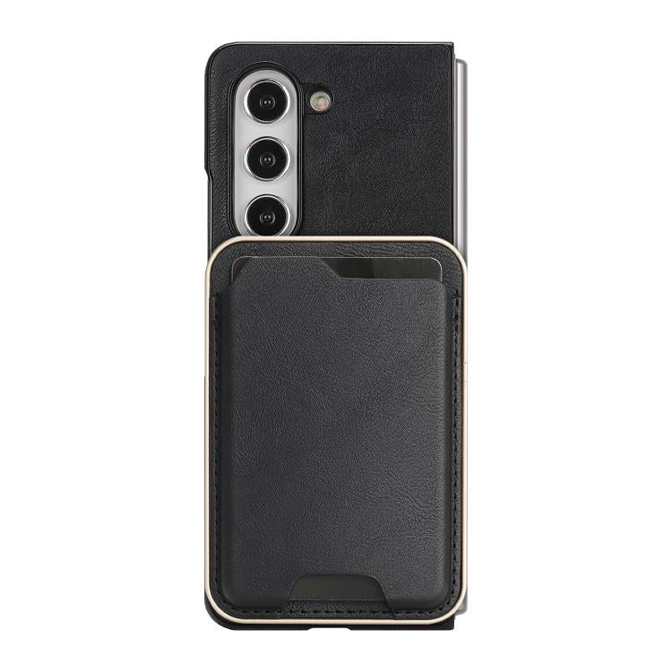For Samsung Galaxy Z Fold6 Kalebol Slim MagSafe Ring Magnetic Card Bag Side Sticker Leather Phone Case(Black)