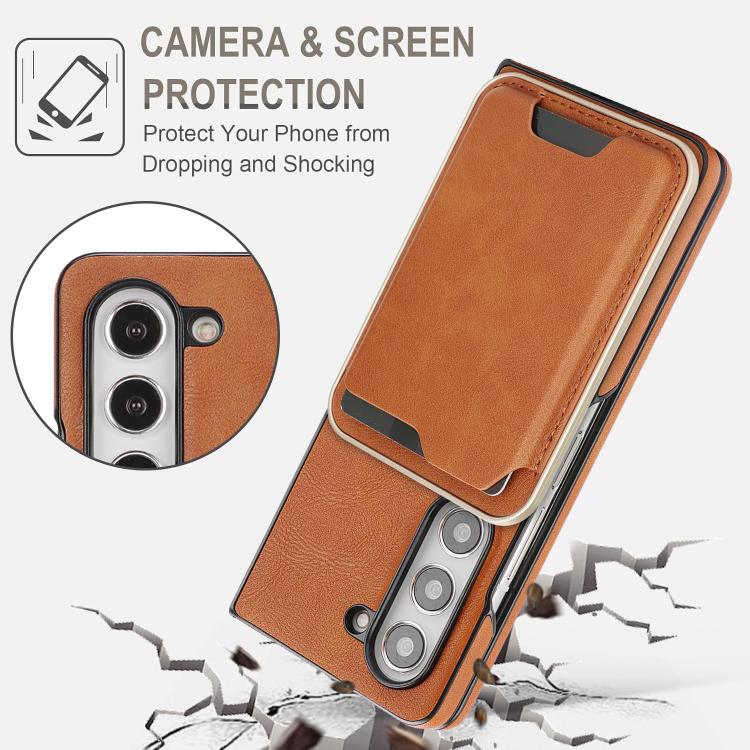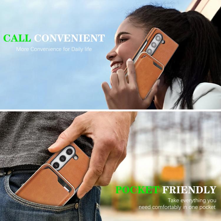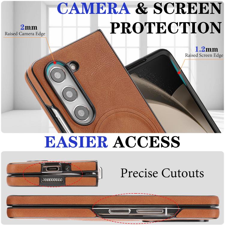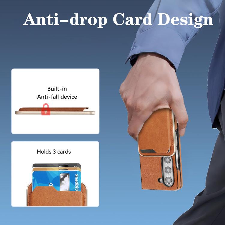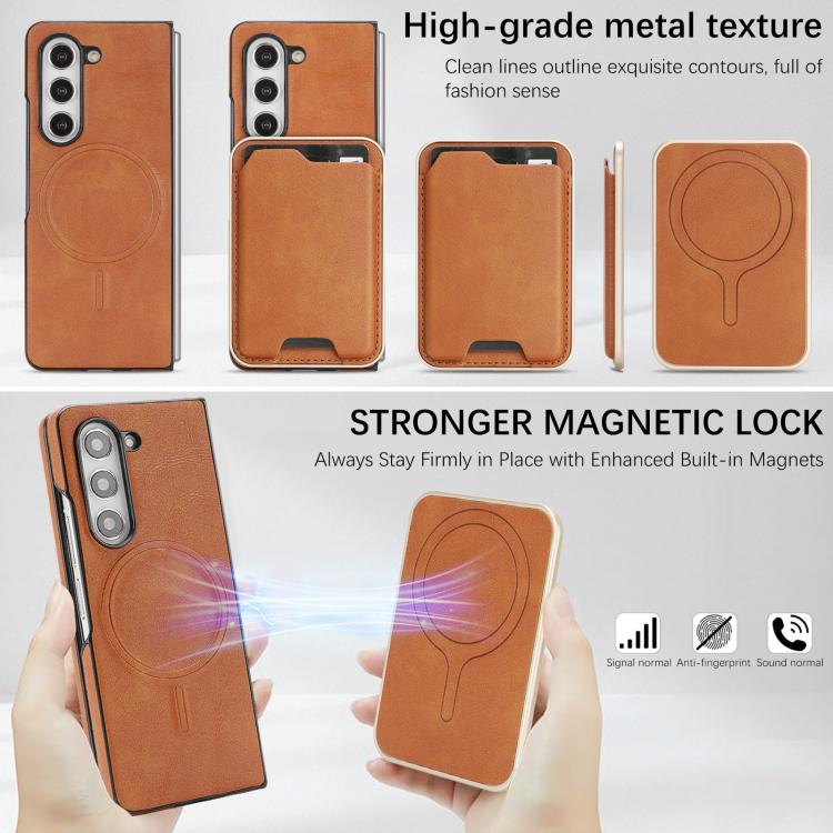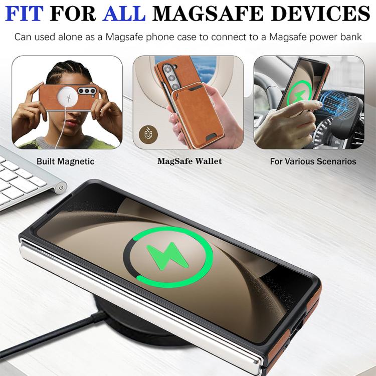For Samsung Galaxy Z Fold6 Kalebol Slim MagSafe Ring Magnetic Card Bag Side Sticker Leather Phone Case(Brown)
