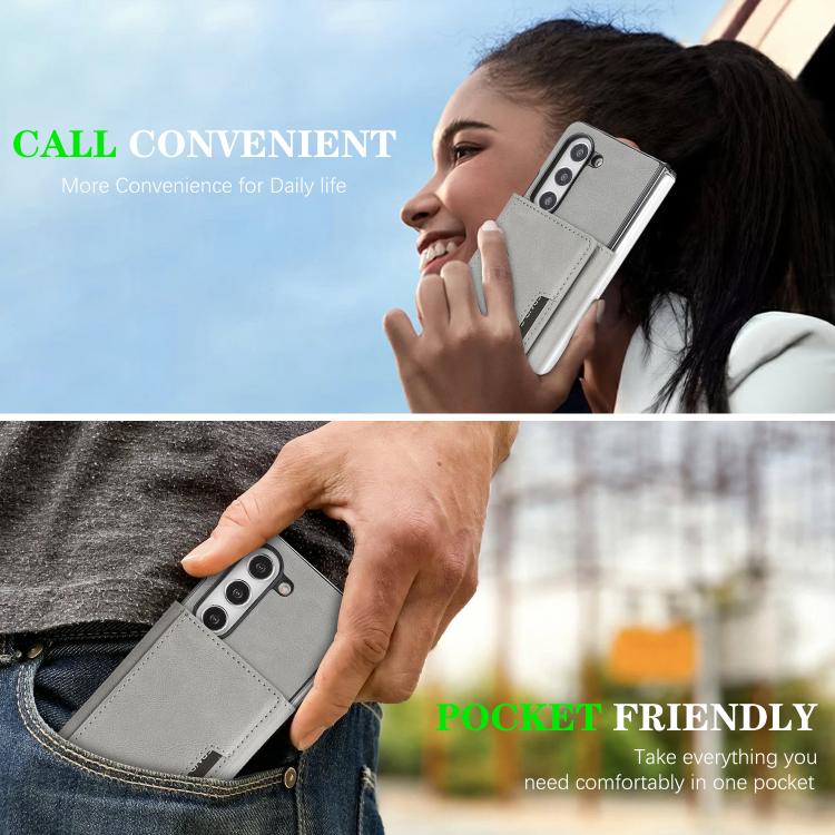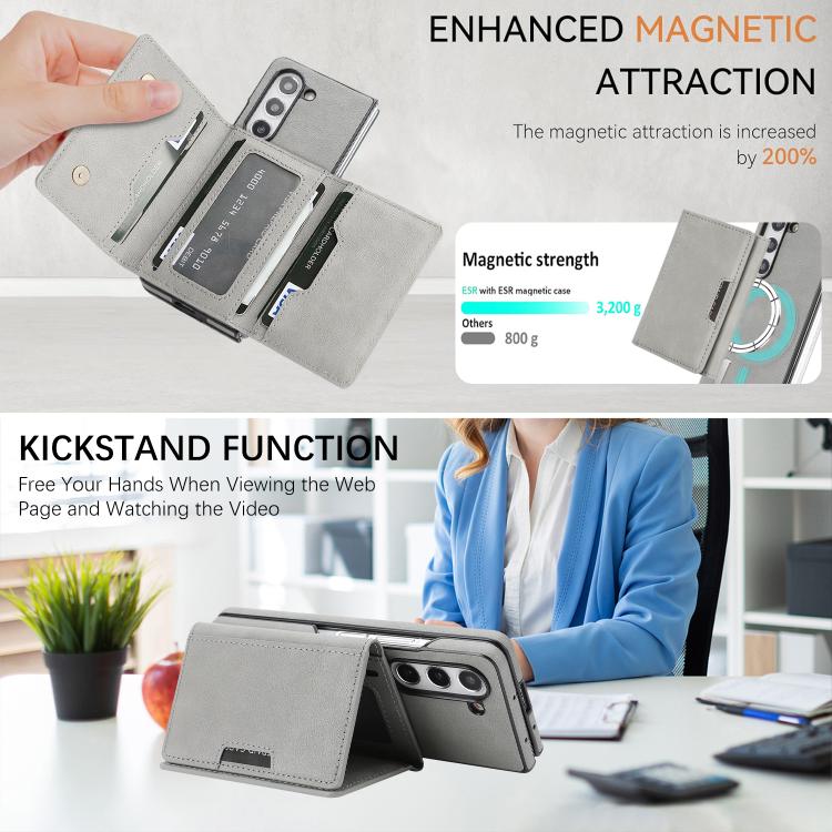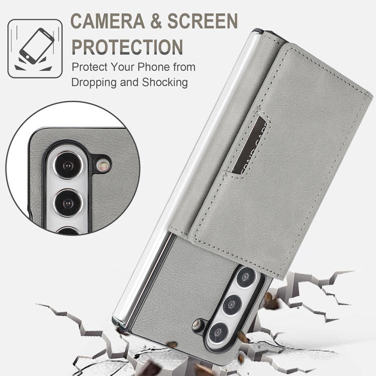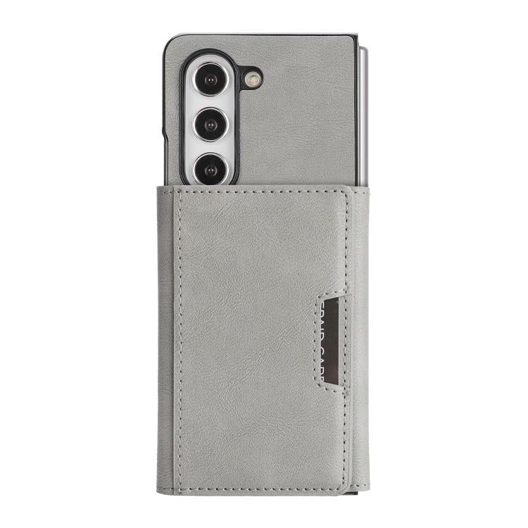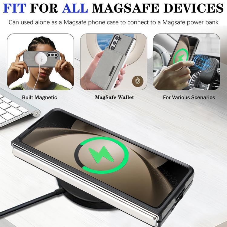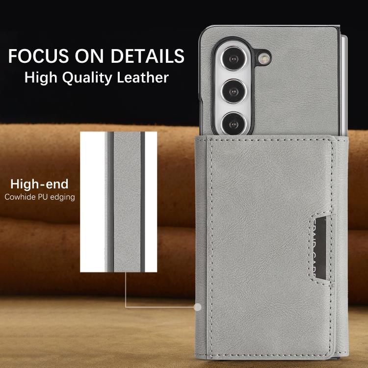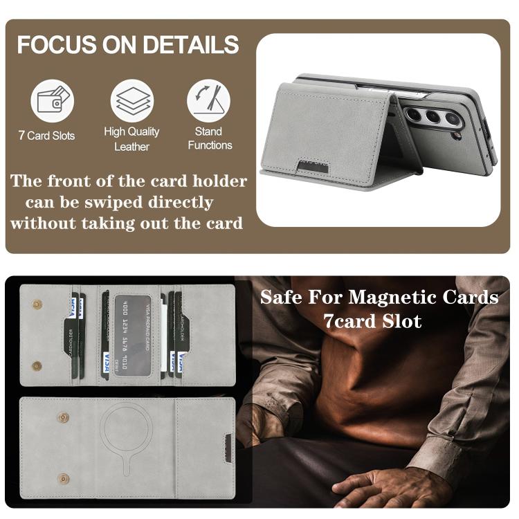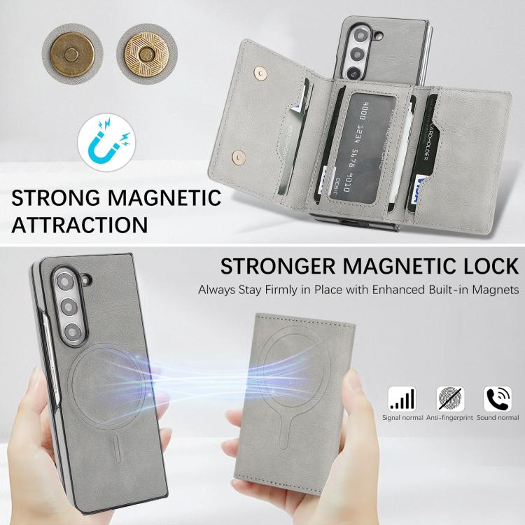 For Samsung Galaxy Z Fold6 Kalebol Strong Magnetic MagSafe Tri-Fold Wallet Side Sticker Leather Phone Case(Gray)