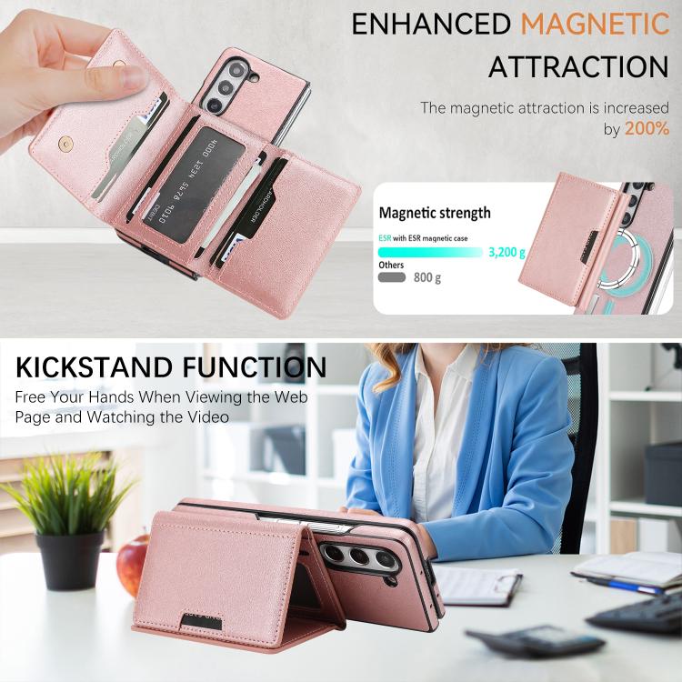 1. Minimalist magnetic leather tri-fold ring magnetic card case, supports Magsafe accessories and wireless charger