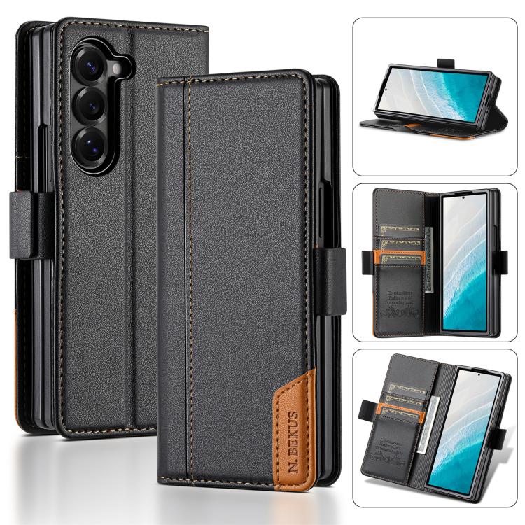 For Samsung Galaxy Z Fold6 N.BEKUS P3 RFID Stitching Magnetic Flip Leather Phone Case(Black)