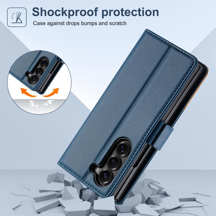 For Samsung Galaxy Z Fold6 N.BEKUS P3 RFID Stitching Magnetic Flip Leather Phone Case(Blue)