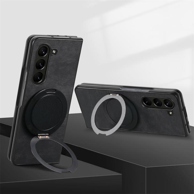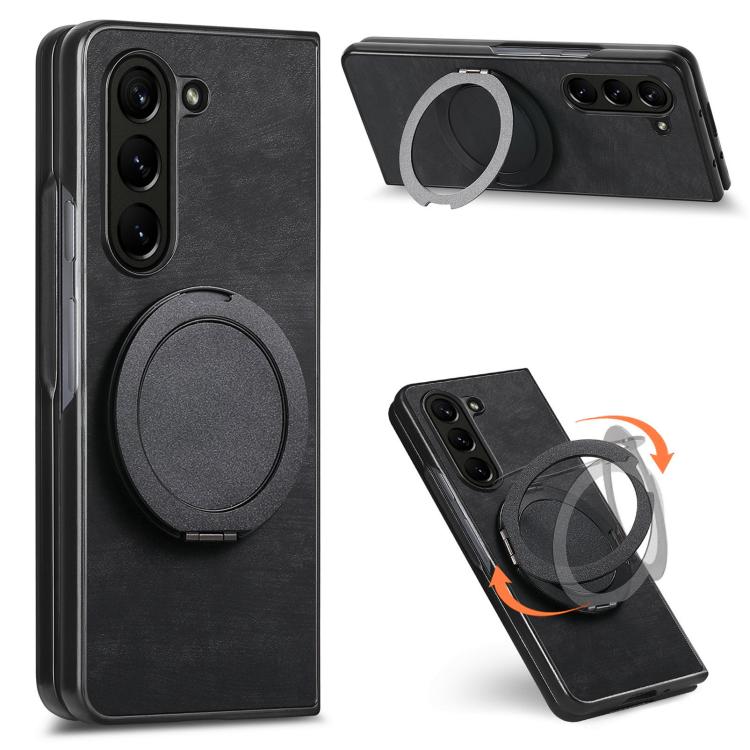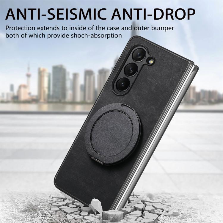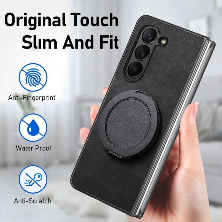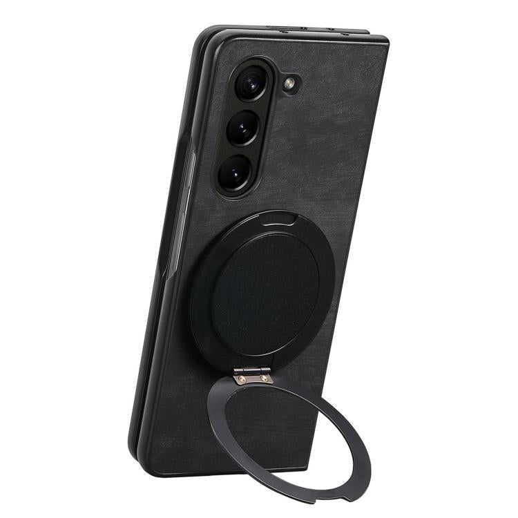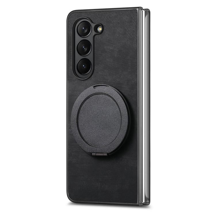 For Samsung Galaxy Z Fold6 Retro Leather Rotation Round Holder Phone Case(Black)