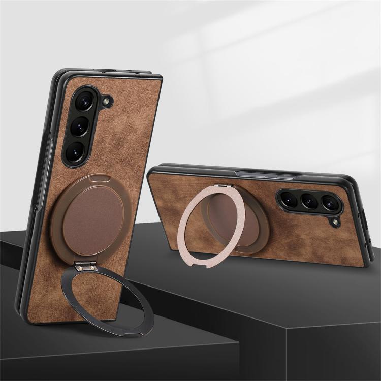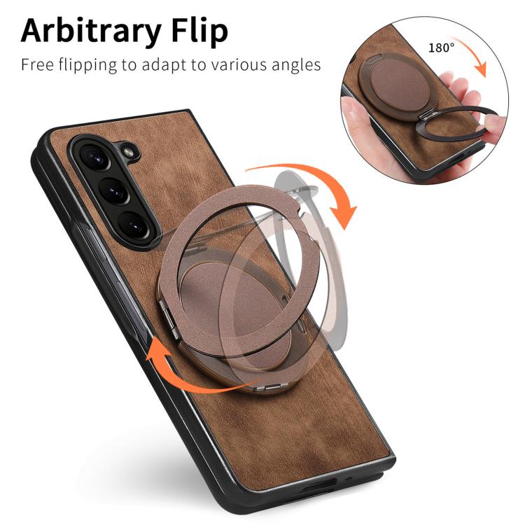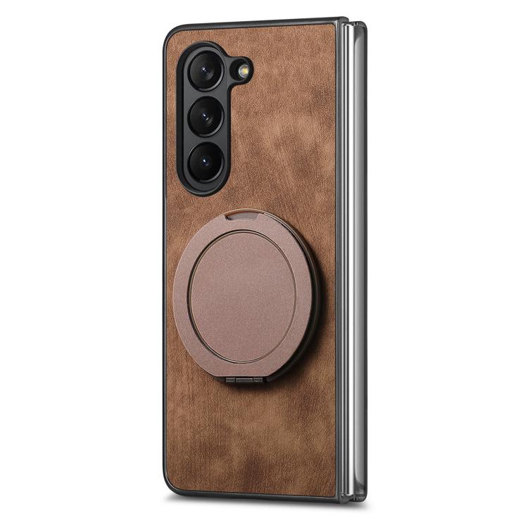 For Samsung Galaxy Z Fold6 Retro Leather Rotation Round Holder Phone Case(Brown)