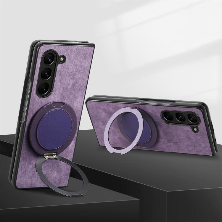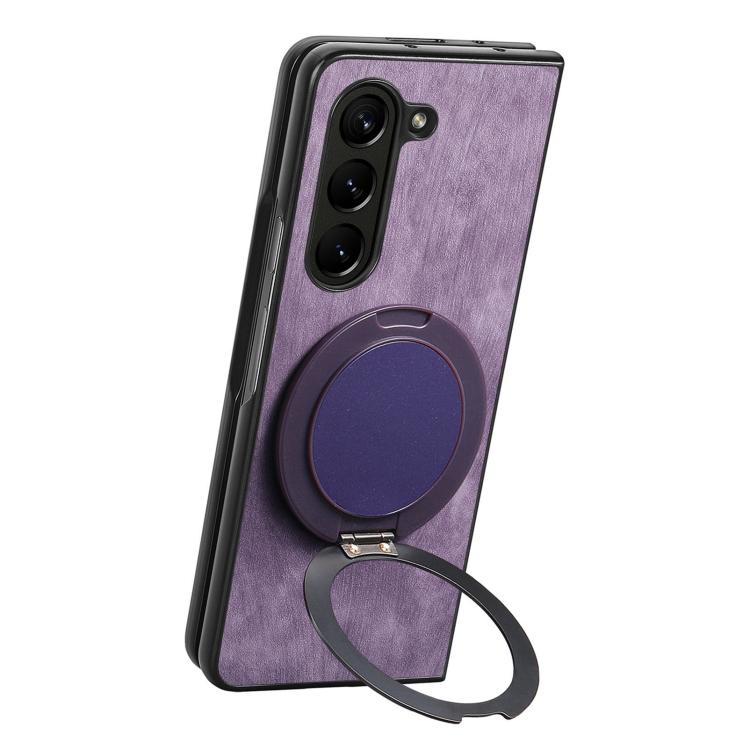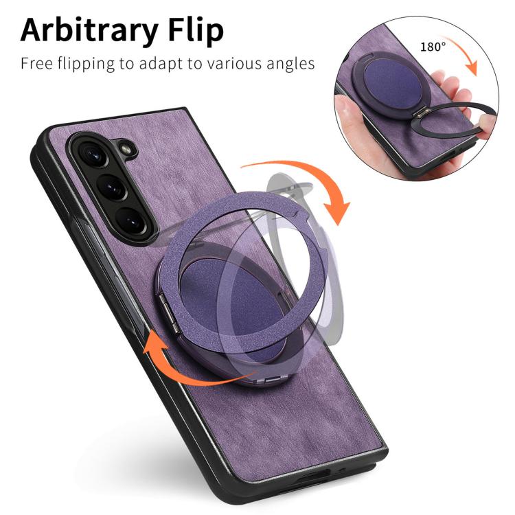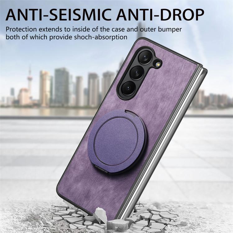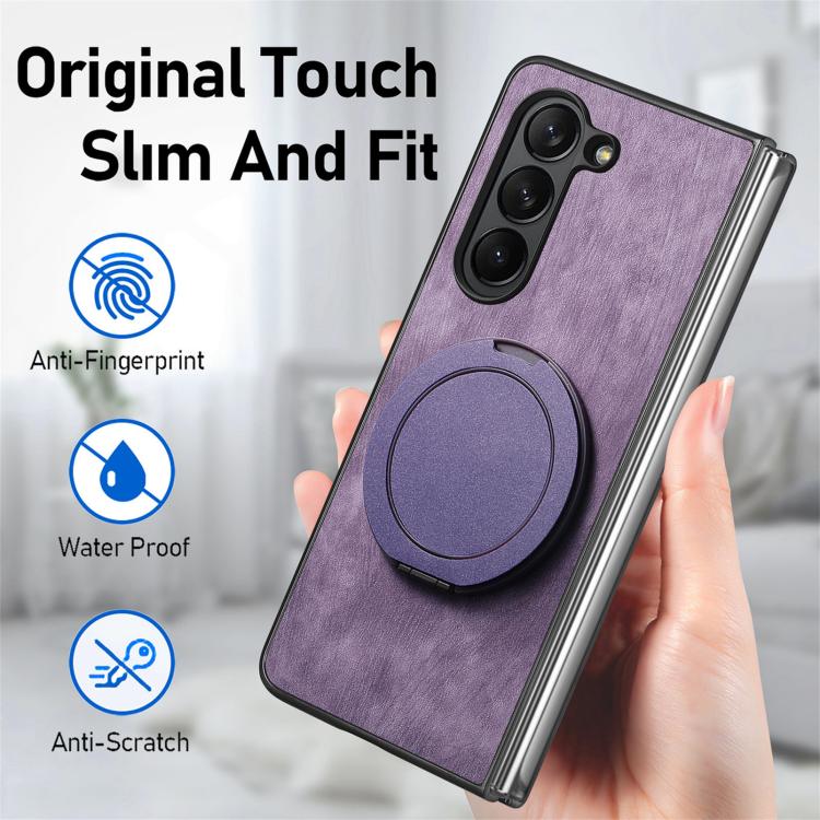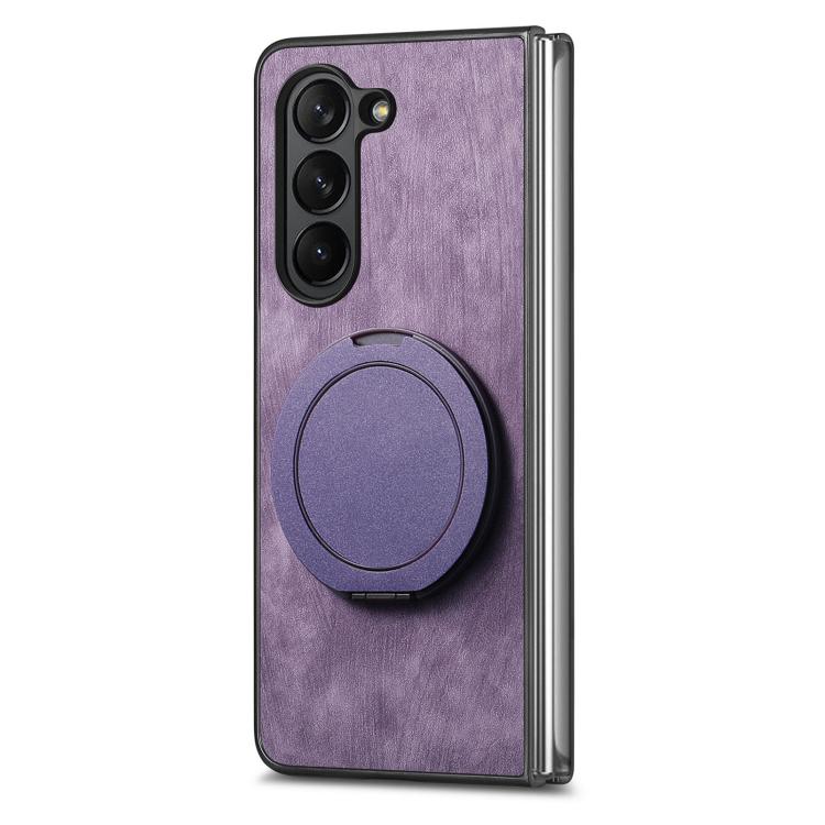 For Samsung Galaxy Z Fold6 Retro Leather Rotation Round Holder Phone Case(Purple)