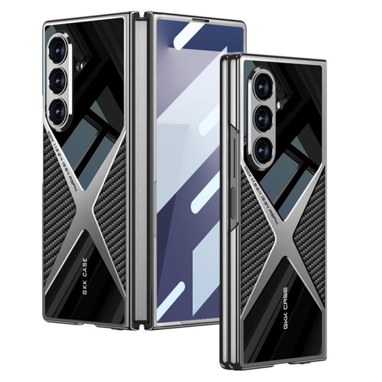 For Samsung Galaxy Z Fold7 5G GKK Integrated Leather Electroplating Supersonic Speed Shockproof Phone Case(Carbon Fibre)