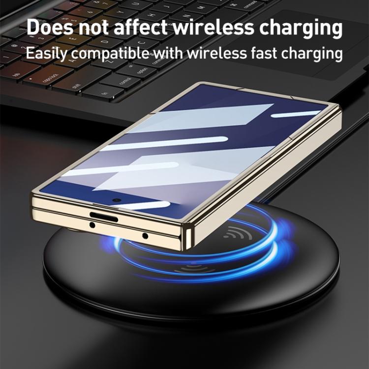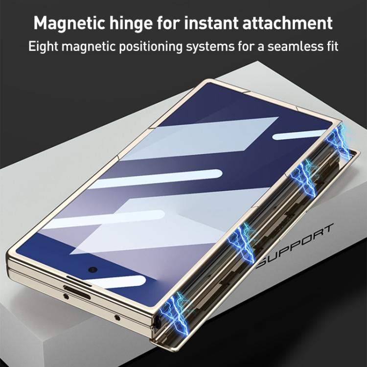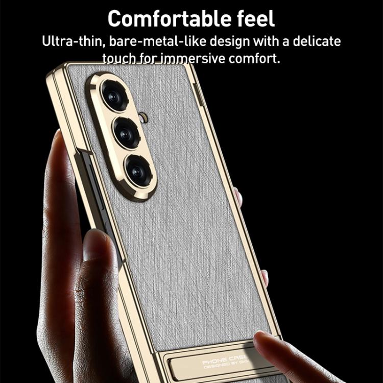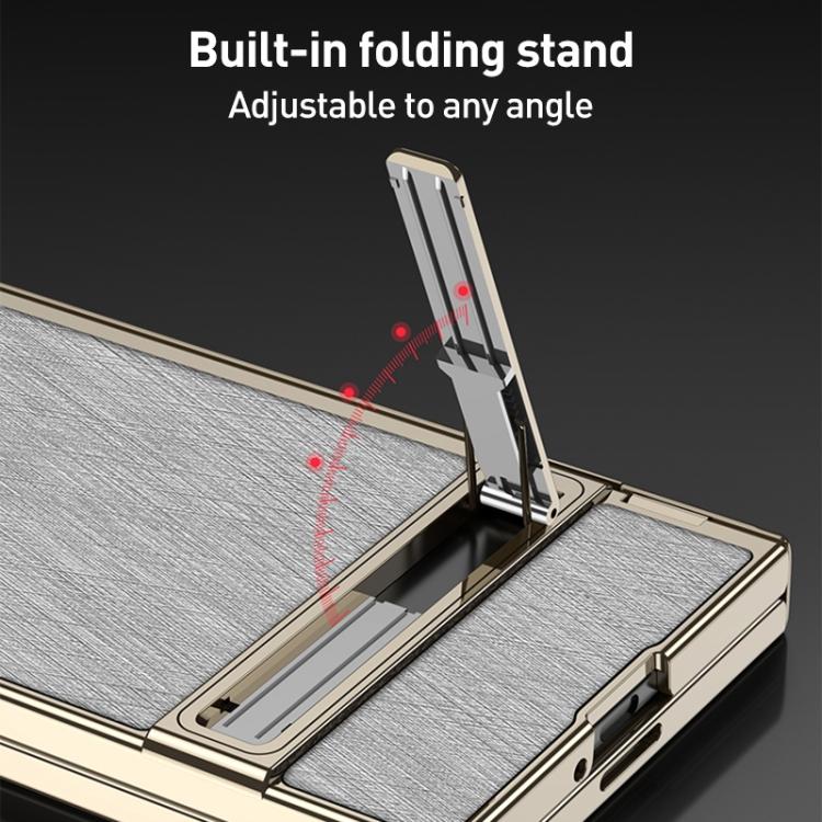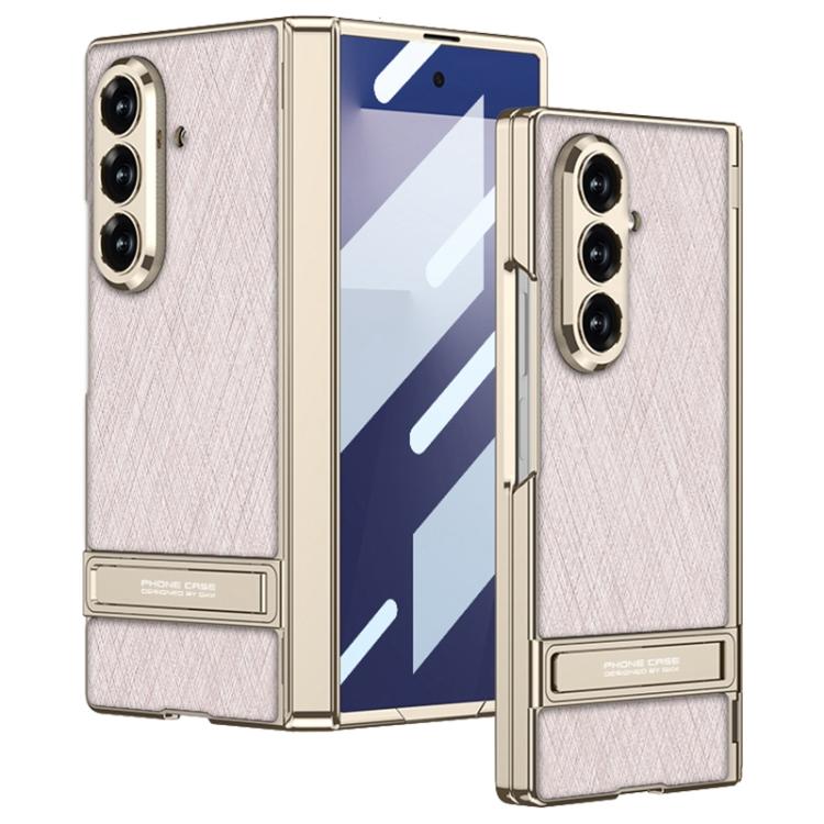 For Samsung Galaxy Z Fold7 5G GKK Integrated Magnetic Plain Leather Silver Brocade Phone Case with Holder(Silver Brocade Pink)