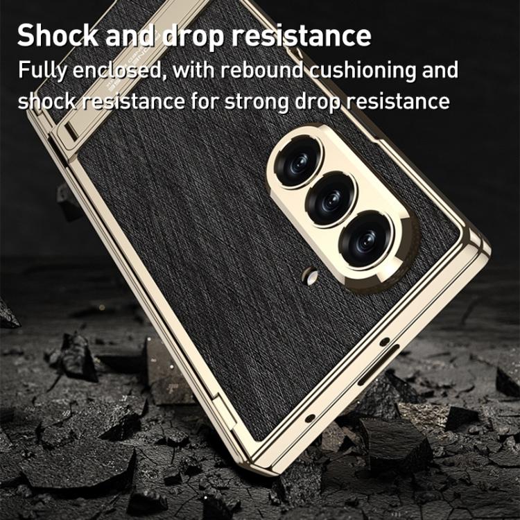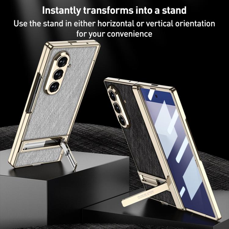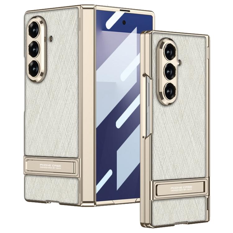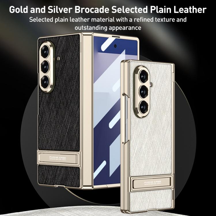 For Samsung Galaxy Z Fold7 5G GKK Integrated Magnetic Plain Leather Silver Brocade Phone Case with Holder(Silver Brocade White)