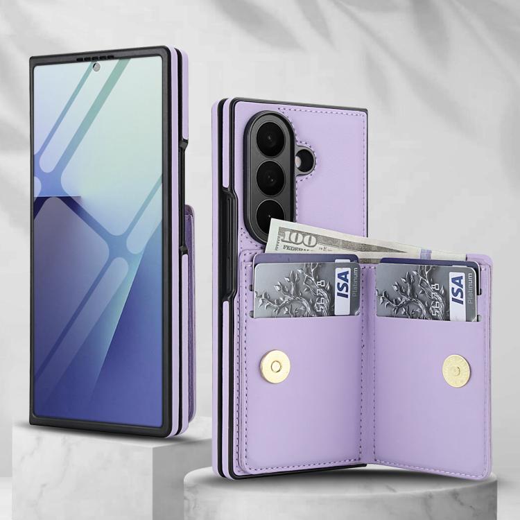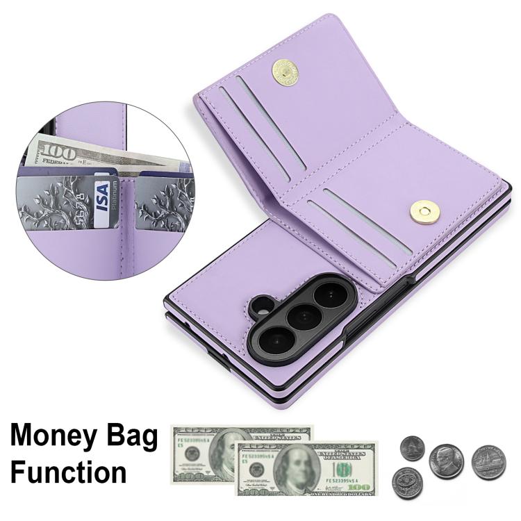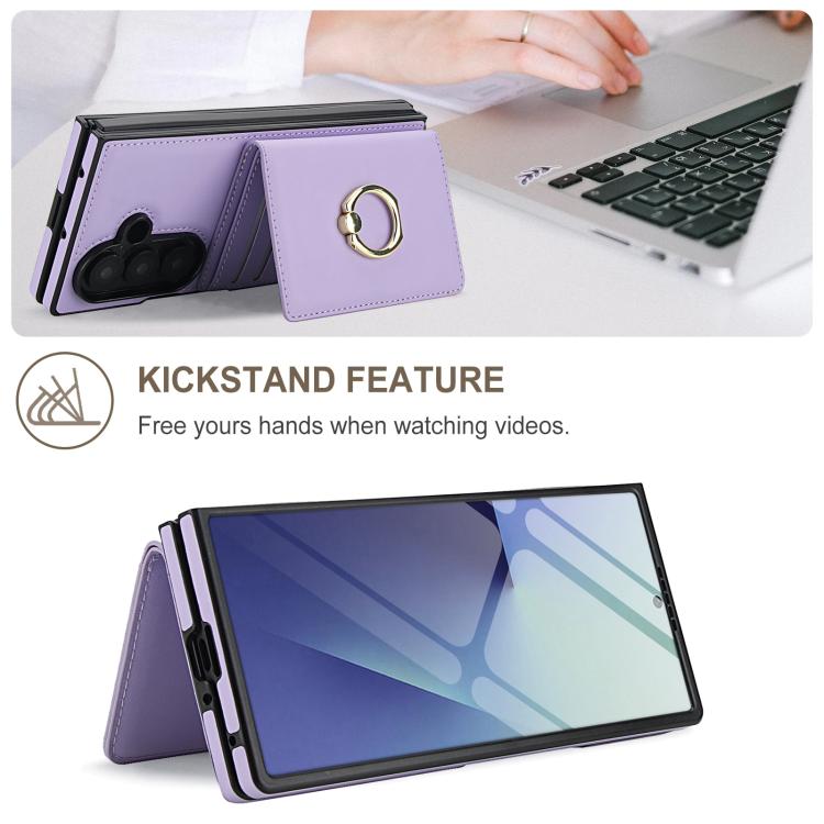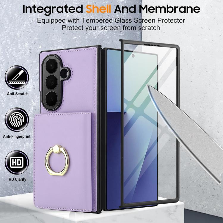 For Samsung Galaxy Z Fold7 5G Integrated Flip Cover Card Slot Holder Leather Phone Case with Ring(Light Purple)