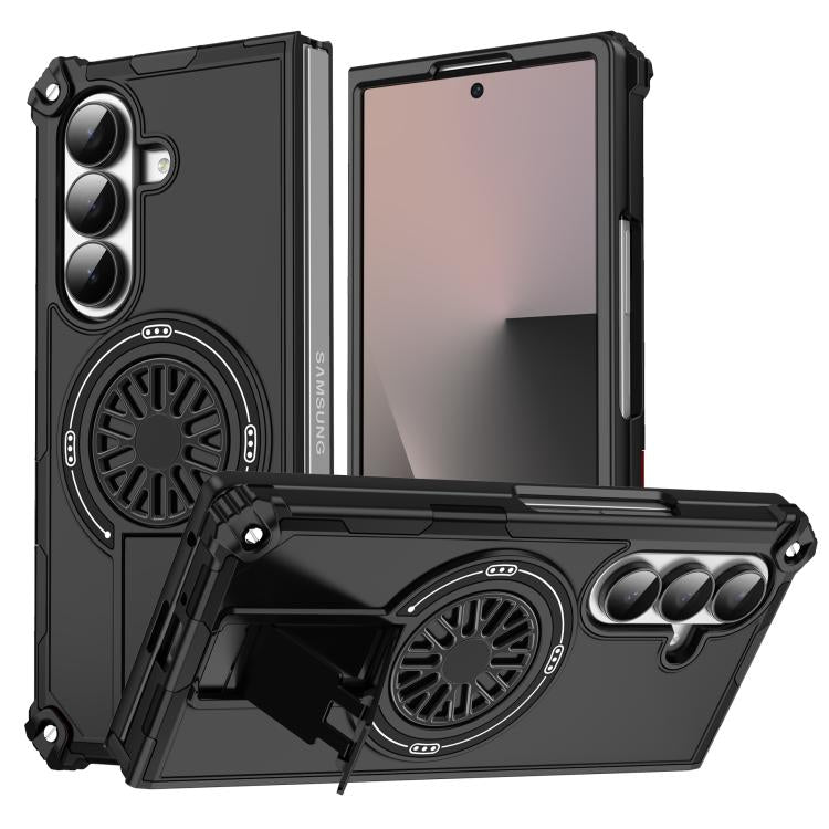 For Samsung Galaxy Z Fold7 5G Shockproof Kickstand Metallic Shaft MagSafe Phone Case(Black)