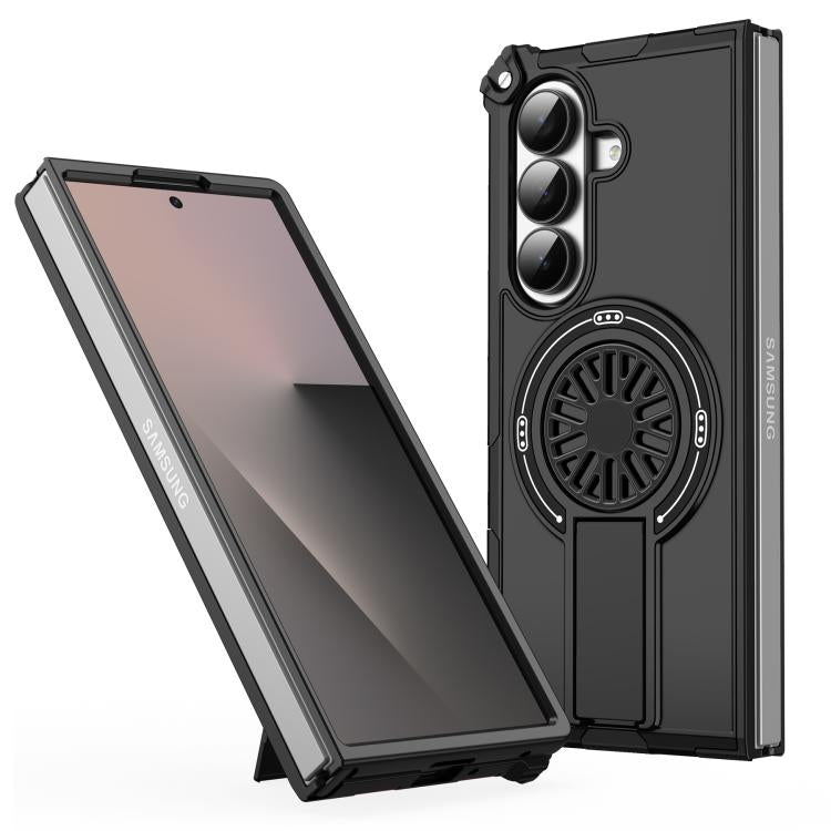 For Samsung Galaxy Z Fold7 5G Shockproof Kickstand Metallic Shaft MagSafe Phone Case(Orange)